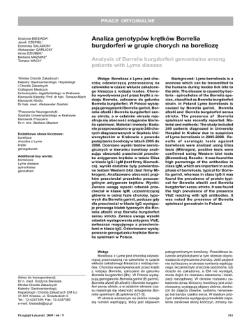 Analiza genotypów krętków Borrelia burgdorferi w grupie chorych na