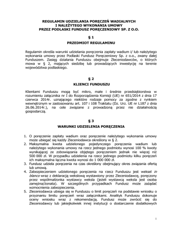 Regulamin udzielania poręczeń - Podlaski Fundusz Poręczeniowy