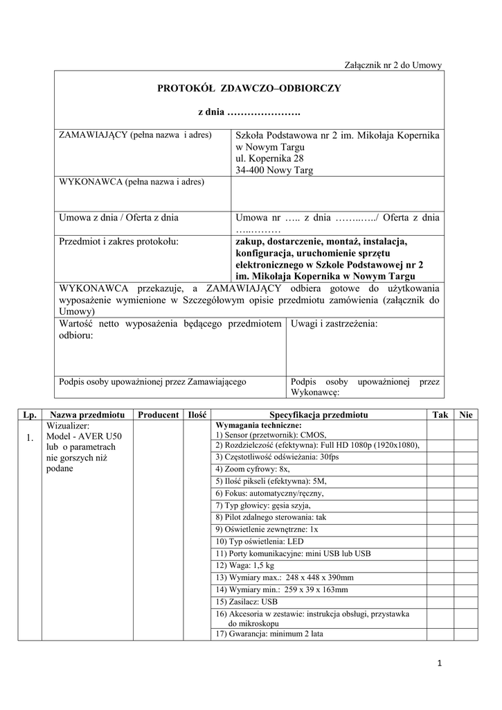 załącznik do umowy - Szkoła Podstawowa Nr 2 im. Mikołaja