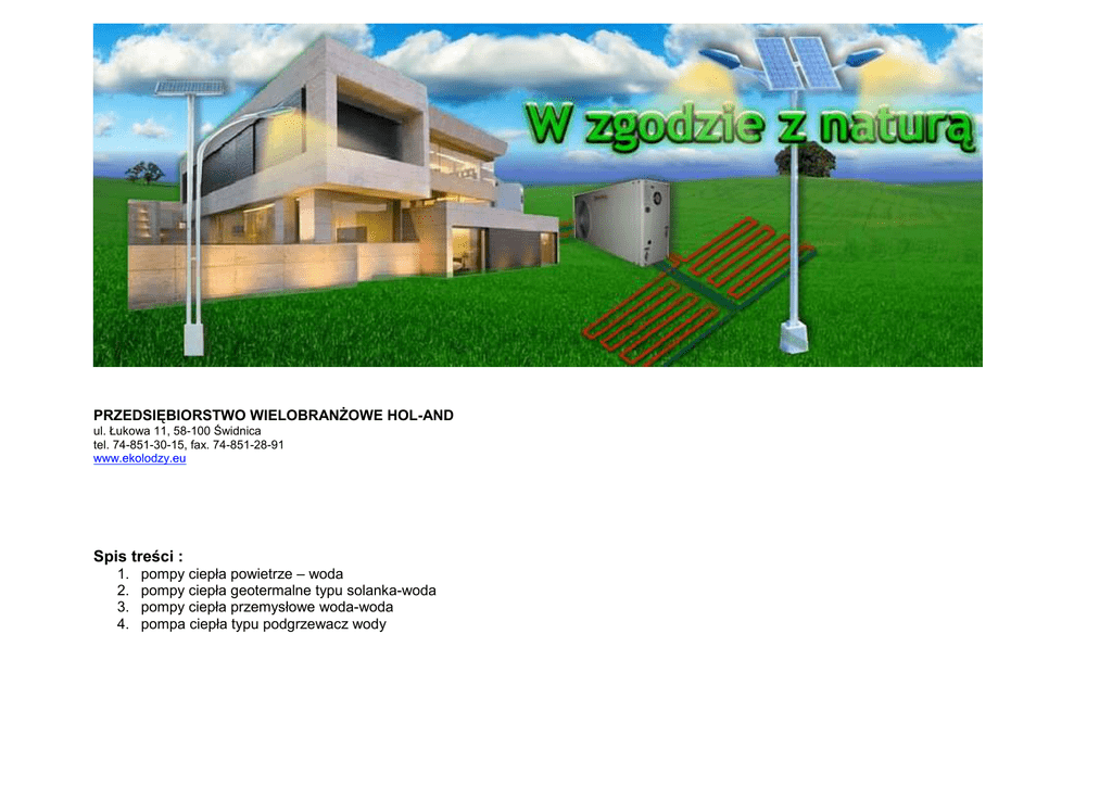 PRZEDSIĘBIORSTWO WIELOBRANŻOWE HOL-AND ul. Łukowa 11, 58-100 Świdnica tel. 74-851-30-15, fax. 74-851-28-91 www.ekolodzy.eu Spis treści : 1. 2. 3. 4. pompy ciepła powietrze – woda pompy ciepła geotermalne typu solanka-woda pompy ciepła przemysłowe woda-woda pompa ciepła typu podgrzewacz wody MONOBLOKOWE POMPY CIEPŁA POWIETRZE-WODA-380V/3PH/50 (60) HZ ● Zakres pracy: -10°C ~ +45°C temperatury otoczenia. ● 380V/3ph/50 (60) Hz ● Wiele zabezpieczeń dla ochrony sprężarki i wymiennika ciepła. ● Z pomocniczym sterowaniem ogrzewaniem, sterowaniem pompy obiegu. ● Opcjonalnie dostępny jest kontroler modułowy. ● Z funkcją timera. ● Regulacja rozmrażania w zależności od różnych warunków pogodowych. ● Z terminalem dla termostatów wewnętrznych, funkcja start i czuwanie pompy ● antykorozyjne obudowy: trwałe powłoki; konstrukcja bez śrub, ze stali nierdzewnej, nie ma problemu rdzy. ● Prosta instalacja: można umieścić na dachu, balkonie, podwórzu, lub w piwnicy. ● niski poziom hałasu. długa żywotność do 15 lat. Pompa ciepła ze źródłem powietrza Monobloc 380V arkusz danych (50Hz/60Hz) Model DE-27W/C(D) DE-36W/C(D) DE-46W/C(D) DE-52W/D DE-75W/D DE-92W/D DE-150W/D DE-180W/D DE-270W/D Zasilanie (V / Ph / Hz) 380/3/50 380/3/50 380/3/50 380/3/50 380/3/50 380/3/50 380/3/50 380/3/50 380/3/50 Moc grzewcza (kW) / COP A7/W30 Moc grzewcza (kW) / COP A0/W30 Moc grzewcza (kW) / COP A0/W50 Wydajność nominalna (kW) Prędkość produkcji wody (L / h) Typ czynnika chłodniczego R Masa czynnika chłodniczego (g) Max. Prąd pracy (A) 8.3/3.77 11.4/3.80 14.1/3.81 17.0/3.77 23.4/3.90 29.3/3.91 45.0/3.81 60.0/4.05 92.0/4.16 7.8/3.20 10.8/3.20 13.3/3.20 16.0/3.20 21.8/3.40 27.3/3.40 40.5/3.40 54.6/3.40 83.0/3.40 7.3/2.30 10.0/2.30 12.2/2.30 14.6/2.30 19.7/2.40 24.6/2.40 36.9/2.40 49.3/2.40 76.2/2.40 2.2 3.0 3.7 4.5 6.0 7.5 11.8 14.8 22.1 240 320 415 500 660 825 1250 1735 2170 417A/R407C/R410A 1850 2100 2300 2800 2100x2 2300x2 2300x3 2300x4 3450x4 7.5 10.0 13.0 15.6 20.0 25.0 40.5 49.0 73.5 Temp. ogrzewania. (°C) Max. Temp ogrzewania. (°C) Rodzaj sprężarki x Ilość Typ kondensora Waga netto (kg) 55 55 55 55 55 55 55 55 55 66 66 66 66 66 66 66 66 66 spiralna x 1 spiralna x 1 spiralna x 1 spiralna x 1 spiralna x 2 spiralna x 2 spiralna x 3 spiralna x 4 spiralna x 4 Wysoce wydajne cewki koncentryczne (rura w rurze) wymiennik ciepła 100 125 140 175 245 260 495 622 1500 Rozmiar netto (podmuch boczny) (mm) Rozmiar netto podmuch górny) (mm) Wymagana szybkość przepływu wody (m3 / h) łącze wody 680x545x1055 760x545x1250 760x545x1250 -------- -------- -------- --------- -------- -------- 700x690x860 800x780x1000 800x780x1000 800x780x1200 1200x920x125 5 1200x920x125 5 2000*1000*17 50 2400x1130x23 00 2400x1400x23 00 2.2 3.2 4.0 5.0 6.5 8.0 12.0 16.0 24.0 G1’’ G1’’ G1’’ G1’’ G1 1/4’’ G1 1/4’’ G2’’ G2’’ G3’’ Temperatura otoczenia (°C) Hałas (dB) w odległości 1 metra -10~45 -10~45 -10~45 -10~45 -10~45 -10~45 -10~45 -10~45 -10~45 ≤60 ≤62 ≤64 ≤64 ≤65 ≤65 ≤68 ≤68 ≤68 ● warunki testu: A7/W30, A0/W30, A0/W50. (A: temp. otoczenia., W: temperatura wody powrotnej.) ● sprężarki Coopeland R417A. zawór rozprężny Emerson ALCO. fan FULIHUA, aluminiowo-magnezowe łopatki wentylatora i trwałe, ciche włókna nylonowe. ● ocynkowana stal z trwałą powłoką proszkową projekt bezśrubowy, odporny na rdzę. ● DuPont czynnik chłodniczy wysokiej czystości: R417A, R407C, R410A. ● Wyjaśnienie nazwy modelu: C –boczy wydmuch powietrza. D- górny wydmuch powietrza. W- rama główna. MONOBLOKOWE POMPY CIEPŁA POWIETRZE-WODA-220V/1PH/50(60)HZ ● Zakres pracy: -10°C ~ +45°C temperatury otoczenia. ● 220V/1ph/50(60)Hz ● Wiele zabezpieczeń dla ochrony sprężarki i wymiennika ciepła. ● Z pomocniczym sterowaniem ogrzewaniem, sterowaniem pompy obiegu. ● Opcjonalnie dostępny jest kontroler modułowy. ● Z funkcją timera. ● Regulacja rozmrażania w zależności od różnych warunków pogodowych. ● antykorozyjne obudowy: trwałe powłoki; konstrukcja bez śrub, ze stali nierdzewnej, nie ma problemu rdzy. ● Prosta instalacja: można umieścić na dachu, balkonie, podwórzu, lub w piwnicy. ● niski poziom hałasu. długa żywotność do 15 lat. Pilot zdalnego sterowania MONOBLOKOWA POMPA CIEPŁA ZE ŹRÓDŁEM POWIETRZA 220V (50HZ/60HZ) Model DE-18W/C DE-27W/C(D) DE-36W/C(D) DE-46W/C(D) Zasilanie (V / Ph / Hz) 220/1/50 220/1/50 220/1/50 220/1/50 Moc grzewcza (kW) / COP A7/W30 5.5/3.72 8.3/3.76 11.3/3.74 14.1/3.76 Moc grzewcza (kW) / COP A0/W30 Moc grzewcza (kW) / COP A0/W50 Wydajność nominalna (kW) 5.3/3.20 4.9/2.30 1.48 7.8/3.20 7.3/2.30 2.21 10.6/3.20 9.8/2.30 3.02 13.0/3.20 12.0/2.30 3.75 Prędkość produkcji wody (L / h) Typ czynnika chłodniczego R Masa czynnika chłodniczego (g) 160 240 R417A /R407C /R410A 1400 1850 320 415 2100 2300 Max. Prąd pracy (A) 13.0 19.5 26.0 32.0 Temp. ogrzewania. (°C) Max. Temp ogrzewania. (°C) Rodzaj sprężarki x Ilość 55 60 obrotowa x 1 55 60 spiralna x 1 55 60 spiralna x 1 55 60 spiralna x 1 Typ kondensora Waga netto (kg) Wysoce wydajne cewki koncentryczne (rura w rurze) wymiennik ciepła 85 100 125 140 Rozmiar netto (podmuch boczny) (mm) 680x545x1055 Rozmiar netto podmuch górny) (mm) ----Wymagana szybkość przepływu wody (m3 / h) 1.6 łącze wody G3/4’’ Temperatura otoczenia (°C) -10~45 Hałas (dB) w odległości 1 metra ≤55 680x545x1055 700x690x860 2.2 G1’’ -10~45 ≤55 700x690x860 800x780x1000 3.2 G1’’ -10~45 ≤60 760x545x1250 800x780x1000 4.0 G1’’ -1 0~45 ≤64 ● warunki testu: A7/W30, A0/W30, A0/W50. (A: temp. otoczenia., W: temperatura wody powrotnej.) ● sprężarki Coopeland R417A. zawór rozprężny Emerson ALCO. fan FULIHUA, aluminiowo-magnezowe łopatki wentylatora i trwałe, ciche włókna nylonowe. ● ocynkowana stal z trwałą powłoką proszkową projekt bezśrubowy, odporny na rdzę. ● Czynnik chłodniczy wysoki