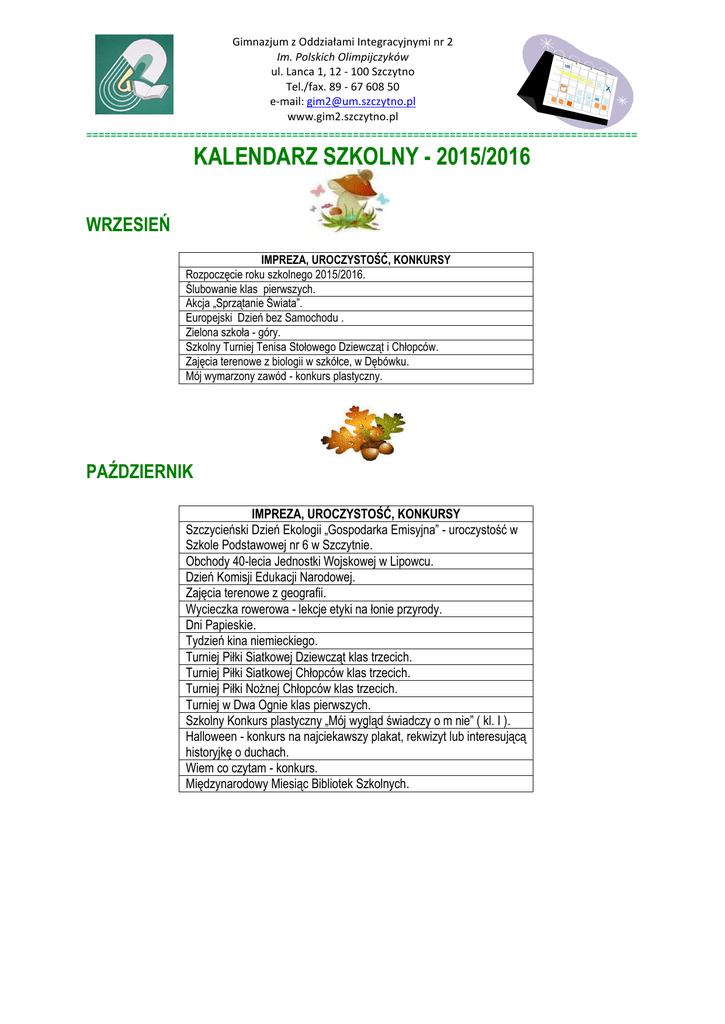 kalendarz szkolny - 2015/2016