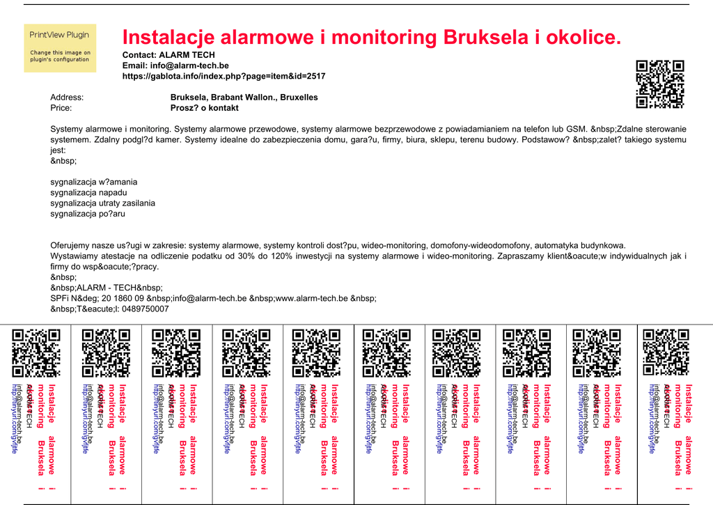 Instalacje alarmowe i monitoring Bruksela i okolice. Contact: ALARM TECH Email: [email protected] https://gablota.info/index.php?page=item&id=2517 Address: Price: Bruksela, Brabant Wallon., Bruxelles Prosz? o kontakt Systemy alarmowe i monitoring. Systemy alarmowe przewodowe, systemy alarmowe bezprzewodowe z powiadamianiem na telefon lub GSM. Zdalne sterowanie systemem. Zdalny podgl?d kamer. Systemy idealne do zabezpieczenia domu, gara?u, firmy, biura, sklepu, terenu budowy. Podstawow? zalet? takiego systemu jest: sygnalizacja w?amania sygnalizacja napadu sygnalizacja utraty zasilania sygnalizacja po?aru Oferujemy nasze us?ugi w zakresie: systemy alarmowe, systemy kontroli dost?pu, wideo-monitoring, domofony-wideodomofony, automatyka budynkowa. Wystawiamy atestacje na odliczenie podatku od 30% do 120% inwestycji na systemy alarmowe i wideo-monitoring. Zapraszamy klientów indywidualnych jak i firmy do wspó?pracy. ALARM - TECH SPFi N° 20 1860 09 [email protected] www.alarm-tech.be Tél: 0489750007 Instalacje alarmowe monitoring Bruksela okolice. ALARM TECH [email protected] http://tinyurl.com/gvfjtfe Instalacje alarmowe monitoring Bruksela okolice. ALARM TECH [email protected] http://tinyurl.com/gvfjtfe Instalacje alarmowe monitoring Bruksela okolice. ALARM TECH [email protected] http://tinyurl.com/gvfjtfe Instalacje alarmowe monitoring Bruksela okolice. ALARM TECH [email protected] http://tinyurl.com/gvfjtfe Instalacje alarmowe monitoring Bruksela okolice. ALARM TECH [email protected] http://tinyurl.com/gvfjtfe Instalacje alarmowe monitoring Bruksela okolice. ALARM TECH [email protected] http://tinyurl.com/gvfjtfe Instalacje alarmowe monitoring Bruksela okolice. ALARM TECH [email protected] http://tinyurl.com/gvfjtfe Instalacje alarmowe monitoring Bruksela okolice. ALARM TECH [email protected] http://tinyurl.com/gvfjtfe Instalacje alarmowe monitoring Bruksela okolice. ALARM TECH [email protected] http://tinyurl.com/gvfjtfe Instalacje alarmowe monitoring Bruksela okolice. ALARM TECH [email protected] http://tinyurl.com/gvfjtfe i i i i i i i i i i i i i i i i i i i i Powered by TCPDF (www.tcpdf.org)