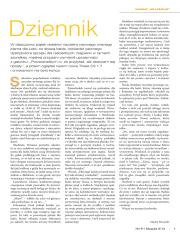 zamiast „od redakcji” Dziennik obotnim popołudniem redaktor naczelny pewnego pisma dla ludzi, którzy oczyszczają prąd do słuchania złotych płyt, siedział naburmuszony. Nie podobały mu się słuchawki, w których miał właśnie zamiar uciąć sobie podszytą muzycznym podkładem drzemkę po obiedzie, złożonym z placków ziemniaczanych ze śmietaną i wina kupionego w Lidlu za 14,90 zł. W końcu mruknął pod nosem: „Niech tam” i udał się do komórki lokatorskiej. Za chwilę zaczęły stamtąd dochodzić hałasy i smród nadpalonej gumy. Po dobrej godzinie zmagań redaktor zasiadł w swoim fotelu ze sztucznej skóry, włączył telewizor i siarczyście zaklął. Bo cóż z tego, że nowe słuchawki gotowe, kiedy przegapił „Familiadę” i nie będzie miał dowcipu na nadchodzący tydzień. Niedziela. Poranna potrzeba obudziła ze snu redaktora naczelnego pewnego pisma dla ludzi, którzy czują obrzydzenie do gałek podbijających basy i soprany. Zresztą, co to był za sen. Koszmar. Artykuł o drogim wzmacniaczu był już prawie ukończony, ale brakowało w nim puenty. Był jak kiełbasa z grilla bez musztardy sarepskiej, którą bywa, że jadał samą, ewentualnie z chlebkiem. A czas gonił, niczym wzrastające ciśnienie w podbrzuszu. Łazienkowa lektura konkurencyjnego czasopisma miała prowadzić do bezczelnego zerżnięcia myśli kolegi po fachu, ale olśnienie spadło samo, niczym kłoda powalonej przez drwala sosny. „Mam!” – odbiło się echo od glazury: „Jak posłuchasz, to się zes….”. Entuzjazm trwał jednak krótko, ponieważ redaktor doskonale wiedział, że korekta, w osobie jego zastępcy, tego nie puści. Że niby w poważnym piśmie dla ludzi, którzy oklejają ściany tekturami po jajkach, nie można używać brzydkich wyrazów. Redaktor oficjalnie przyznawał temu rację, ale w duchu czuł, że to z zazdrości. Poniedziałek zaczął się paskudnie dla redaktora naczelnego pewnego pisma dla ludzi, którzy zastawiają pułapki na bas. Nie dosyć, że pasjans w czterech kolorach nie wyszedł, to jeszcze czekał na niego stos słoików do umycia. Szykował się wyjazd do rodziców na długi weekend. Wczorajszy wieczór, spędzony w towarzystwie promocyjnego Kasztelana z Biedronki, nie przyniósł też oczekiwanych efektów w postaci napisanego wstępniaka. To nie był taki początek tygodnia, jakiego oczekiwał. Wyglądało na to, że pech go już nie opuści, bo schylając się, by wetknąć kabelki w dostarczony do testu wzmacniacz, boleśnie stłukł się w okolicy pośladka i wykwitła mu tam fioletowa plamka. Dostrzegł to z pewnym trudem w lustrze, bo tusza nabyta na słoikowej diecie utrudniała przyjmowanie póz jogina. Kiedy nacisnął palcem przebarwienie, zawył z bólu. Równocześnie poczuł jednak, że stało się coś ważnego. Doznał olśnienia. Nareszcie zrozumiał, co to jest „punktowe źródło dźwięku”. Wtorek. „Dlaczego każdy poranek musi być taki okrutny i nieludzki” – zastanawiał się redaktor naczelny pewnego pisma dla ludzi, którzy słyszą, w którym kierunku płynie prąd w kablach. Najchętniej spałby do jutra, a nawet pojutrza, ryzykując, że zatrą się kalendarzowe instrukcje dotyczące aktywności osobnika płci męskiej po czterdziestce, na dodatek z mocno zarysowaną linią brzucha. A mówią one jasno: zmusić się do wysiłku i zarabiać na swoje proste potrzeby i cokolwiek dziwaczne zakupy internetowe, dokonywane późnym wieczorem pod wpływem impulsu i wina z dyskontu. Czyli przynosić do jaskini łupy. Redaktor wiedział, że inaczej się nie da, ale starał się rozpaczliwie tej świadomości unikać. Dlatego chwilowo zajął się z młodzieńczą energią kopiowaniem z internetu zdjęć roznegliżowanych kobiet, ze sprzętem hi-fi w tle, bo to dobrze karmiło fejsbuka macierzystego wydawnictwa. Czuł się potrzebny, a im więcej znalazł, tym usilniej szukał. Zaangażował się w misję do tego stopnia, że nawet nie spostrzegł, kiedy dopadła go bezlitosna jak jastrząb pikujący na chrupiącą ziarenka w trawie myszkę środa. Jedno było pewne: test wzmacniacza ciągle nie napisany, a zapasy w lodówce się kończą. Jutro trzeba będzie pojechać do Lidla, a potem na poważnie przysiąść, bo już prawie czerwiec i to koniec żartów. Środa. Redaktor naczelny pewnego czasopisma dla ludzi, którzy stawiają sprzęt i kolumny na szpikulcach, obudził się szczęśliwy. To był dzień, który poprzedzała najcięższa praca pod Słońcem. Zakończył numer. Co tam wie górnik, hutnik, rolnik. Żaden z nich nie przeżył takiego stresu i przyśpieszenia; nie stał się tak żałosnym (tu walczył przez chwilę z łezką) kłębkiem nerwów. Nawet żołnierz, który szedł na bagnety i maszynista widzący z przeciwka tunelu niepokojące światełko… „No, tutaj się może trochę zagalopowałem” – pomyślał redaktor, nakrywając kołdrą zmarszczone pośladki, wystawione na uporczywą emisję zimna z okna, które zapomniał wczoraj domknąć. Mimo to czuł się dumny i – przede wszystkim – wyzwolony. Wiedział, że pójdzie z rana do osiedlowego sklepu, choć nie bardzo – w jakim celu. Bo wszystko, co trzeba, miał w lodówce. „Zaraz, zaraz – po co mam iść? Nie pójdę!” – krzyknęła, jak niesłusznie skarcone dziecko, podświadomość. Czy mu się to przyśniło, czy był to głos rozsądku, niech pozostanie zagadką. Wezbrał w nim gniew. Żaden wysiłek przez najbliższe dwa dni go nie dopadnie. Co to, to nie. Skończył maraton, dobiegł do mety i należy mu się nagroda. Będzie spał raz w łóżku, raz w wannie, raz przed telewizorem. Razem z sumieniem, które może go akurat teraz, za przeproszeniem, cmoknąć. Więcej na naszym facebooku. Maciej Stryjecki 1