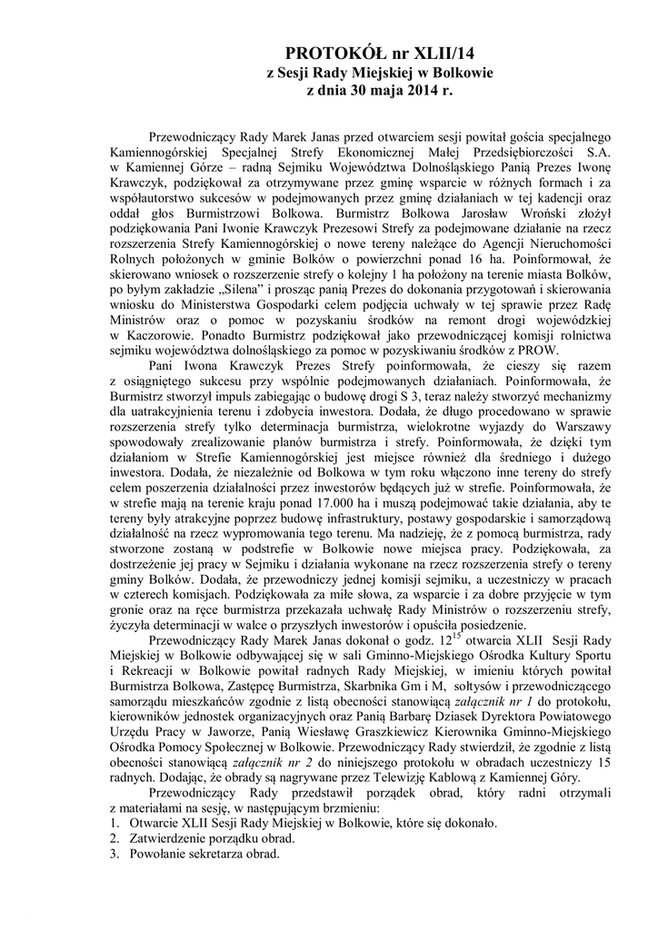 PROTOKÓŁ nr XLII/14 - Urząd Miejski Bolków