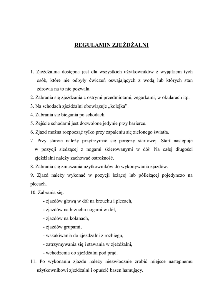 regulamin zjeżdżalni