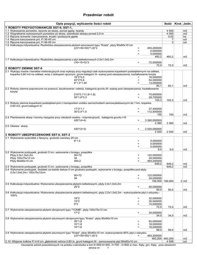 Przedmiar robót Opis pozycji, wyliczenie ilości robót Ilość Krot. Jedn