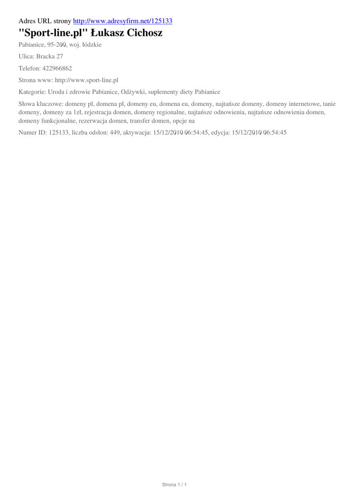 "Sport-line.pl" Lukasz Cichosz, Pabianice, Bracka 27