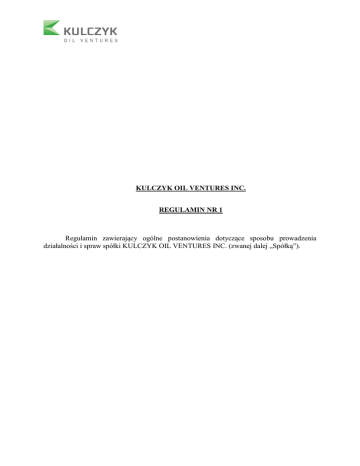KULCZYK OIL VENTURES INC. REGULAMIN NR 1 Regulamin