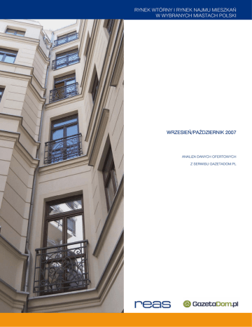 RYNEK WTÓRNY I RYNEK NAJMU MIESZKAŃ W WYBRANYCH MIASTACH POLSKI WRZESIEŃ/PAŹDZIERNIK 2007 ANALIZA DANYCH OFERTOWYCH Z SERWISU GAZETADOM.PL RYNEK WTÓRNY I RYNEK NAJMU MIESZKAŃ W WYBRANYCH MIASTACH POLSKI Mamy przyjemność zaprezentować piąty z cyklu miesięcznych przeglądów rynku mieszkaniowego w Polsce przygotowanych przez REAS na zlecenie i na podstawie danych ofertowych zgromadzonych w serwisie GazetaDom.pl. Serwis GazetaDom.pl od września 2006 roku zajmuje pozycję lidera w polskim internecie w kategorii Budownictwo i Nieruchomości. Miesięcznie odwiedza go prawie 900 tys. użytkowników, którzy wykonują ponad 15 mln odsłon. Serwis wspólnie ze środowym dodatkiem do Gazety Wyborczej, "Gazeta Dom", proponuje ogłoszeniodawcom ofertę dwumedialną. REAS jest ekspertem i doradcą w zakresie planowania i realizacji inwestycji mieszkaniowych w Polsce. Od 1997 REAS opracowuje cykliczne raporty o rynkach mieszkaniowych największych polskich miast. W skład zespołu REAS wchodzą czołowi polscy specjaliści w zakresie badań rynku, projektowania, zarządzania projektem mieszkaniowym, finansowania inwestycji, marketingu i sprzedaży, a także rozwoju miast i mieszkalnictwa. Jako doradcy Banku Światowego i Rządu RP partnerzy REAS od początku lat dziewięćdziesiątych aktywnie brali udział w reformowaniu sektora mieszkaniowego. Niniejszy przegląd został przygotowany na podstawie 60 tys. ofert sprzedaży w sześciu miastach Polski oraz 9,2 tys. ofert najmu w czterech miastach. Opracowanie ma charakter ogólny i nie może być traktowane jako usługa doradcza. Zachęcamy Czytelnika do zasięgnięcia pomocy u doświadczonego specjalisty przed podjęciem decyzji o inwestowaniu. Autorką raportu jest Monika Bazyl, odpowiedzialna w REAS m.in. za analizę statystyczną danych na potrzeby raportów rynkowych. Uwagi oraz pytania dotyczące poniższego opracowania, prosimy kierować pod adres [email protected]. 2 RYNEK WTÓRNY I RYNEK NAJMU MIESZKAŃ W WYBRANYCH MIASTACH POLSKI 1. Oferty sprzedaży na rynku wtórnym W trzech spośród sześciu miast o największej liczbie ofert w serwisie średnie ceny sprzedaży na rynku wtórnym nie zmieniły się w stosunku do sierpnia. W Katowicach średnia cena spadła o 5%. » Mapa 1. Średnie ceny ofert sprzedaży mieszkań na rynku wtórnym w sześciu miastach o największej liczbie ogłoszeń w serwisie – wrzesień 2007 Źródło: REAS na podstawie danych ofertowych serwisu gazetadom.pl Kraków jest nadal na drugim miejscu zaraz za stolicą. Po 4% spadku w sierpniu, średnie ceny w Krakowie wzrosły we wrześniu o 2%. Ceny w Poznaniu od sierpnia zatrzymały się. Ceny ofert w Katowicach, po kilkuprocentowych wzrostach w czerwcu i w lipcu, od sierpnia notują spadek (we wrześniu 5%) Średnia cena ofert w zł/m² we wrześniu 2007 Zmiana w stosunku poprzedniego miesiąca Wykres 1. Ceny ofertowe - wrzesień 2007 Średnia cena w zł/mkw » do 9 234 9 290 9 333 8 228 8 132 8 270 9 315 Warszawa 8 090 7 913 6 907 7 263 7 172 6 999 5 849 9 379 7426 7 416 7334 6081 7 361 6 110 7485 Kraków 7369 6089 Wrocław 5 327 3 683 Trójmiasto 3 954 4083 3 943 czerwiec lipiec sierpień 3739 Poznań Katowice maj wrzesień Źródło: Obliczenia REAS na podstawie danych ofertowych serwisu gazetadom.pl 3 RYNEK WTÓRNY I RYNEK NAJMU MIESZKAŃ W WYBRANYCH MIASTACH POLSKI Od lipca dynamika wzrostu cen we wszystkich sześciu miastach utrzymuje się na poziomie bliskim zeru. W Katowicach ujemna dynamika w sierpniu i wrześniu powoduje powrót cen do poziomu z maja. » Wykres 2. Tempo zmian cen średnich w sześciu polskich miastach: maj - wrzesień 2007 15% Warszawa Średnia cena w zł/mkw 10% Kraków 5% Wrocław 0% Trójmiasto -5% Poznań -10% -15% Katowice czerwiec lipiec sierpień wrzesień Źródło: Obliczenia REAS na podstawie danych ofertowych serwisu gazetadom.pl Na średnią cenę w Warszawie składają się oferty w cenie od 3900 zł/m² na Targówku czy Pradze Południe do ponad 20 000zł/m² m.in. przy ul. Krakowskie Przedmieście, Na Skarpie, na Rynku Starego Miasta. Przeważają oferty w cenie 8000-10000 (44%). W Krakowie, Wrocławiu i Trójmieście przeważają oferty w cenie 6000-8000 zł/ m². W Poznaniu połowa ofert ma cenę 4 – 6 tys. zł/ m²., natomiast w Katowicach 65% mieszkań oferowanych jest w cenie 2000-4000 zł/m². Warszawa Kraków 65% 33% 50% 40% Trójmiasto Poznań 2% 7% 1% 2% 5% 5% 20% 53% Wrocław 17% 20% 4% 2% 1% 15% 43% 33% 12% 3% 0% 9% 44% 21% 10% 24% 70% 60% 50% 40% 30% 20% 10% 0% 58% Wykres 3. Struktura ofert sprzedaży mieszkań według cen w sześciu miastach we wrześniu 2007 1% Procent mieszkań w sprzedaży » Katowice 2 - 4 tys. zł/mkw 4 - 6 tys. zł/mkw 6 - 8 tys. zł/mkw 8 - 10 tys. zł/mkw 10 - 12 tys. zł/mkw > 12 zł/mkw Źródło: Obliczenia REAS na podstawie danych ofertowych serwisu gazetadom.pl 4 RYNEK WTÓRNY I RYNEK NAJMU MIESZKAŃ W WYBRANYCH MIASTACH POLSKI 2. Oferty najmu Ceny ofert najmu zachowują się różnie w zależności od miasta oraz od wielkości mieszkania. W czterech analizowanych miastach – Warszawie, Wrocławiu, Poznaniu i Katowicach - ceny mieszkań jednopokojowych wrosły we wrześniu w porównaniu z sierpniem, co może być związane z poczatkiem roku akademickiego i popytem ze strony studentów. Wykres 4. Średnie ceny ofert najmu mieszkań jednopokojowych w sierpniu i wrześniu 2007 Cena oferty najmu w zł » 1600 1400 1200 1000 800 600 400 200 0 1390 1461 1031 1151 831 857 847 912 sierpień wrzesień Warszawa Wrocław Poznań Katowice Źródło: Obliczenia REAS na podstawie danych ofertowych serwisu gazetadom.pl Od sierpnia wszędzie poza Wrocławiem podrożał również wynajem mieszkań dwupokojowych. » Wykres 5. Średnie ceny ofert najmu mieszkań dwupokojowych w sierpniu i wrześniu 2007 Cena oferty najmu w zł 2500 2118 2245 2000 1877 1807 1253 1307 1500 1406 1429 sierpień wrzesień 1000 500 0 Warszawa Wrocław Poznań Katowice Źródło: Obliczenia REAS na podstawie danych 