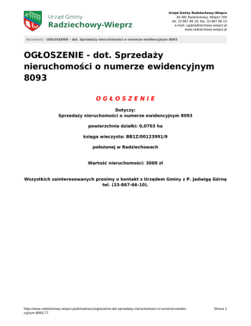 dot. Sprzedaży nieruchomości o numerze ewidencyjnym 8093