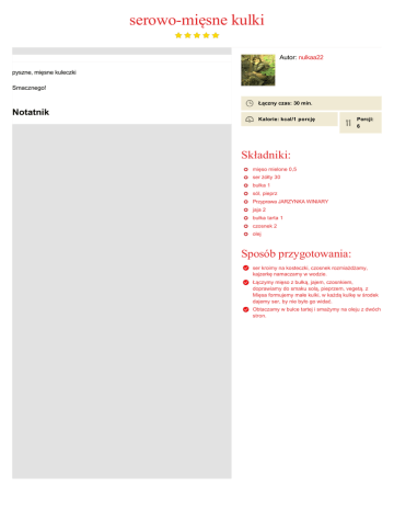 serowomięsne kulki Autor: nulkaa22 pyszne, mięsne kuleczki Smacznego! Łączny czas: 30 min. Notatnik Kalorie: kcal/1 porcję Porcji: 6 Składniki: mięso mielone 0,5 ser żółty 30 bułka 1 sól, pieprz Przyprawa JARZYNKA WINIARY jaja 2 bułka tarta 1 czosnek 2 olej Sposób przygotowania: ser kroimy na kosteczki, czosnek rozmiażdżamy, kajzerkę namaczamy w wodzie. Łączymy mięso z bułką, jajem, czosnkiem, doprawiamy do smaku solą, pieprzem, vegetą. z Mięsa formujemy małe kulki, w każdą kulkę w środek dajemy ser, by nie było go widać. Obtaczamy w bułce tartej i smażymy na oleju z dwóch stron.