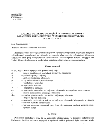 klejonymi. Analiza rozkł adu n aprę ż eń w spoin ach takich poł ą czeń był a tematem wielu