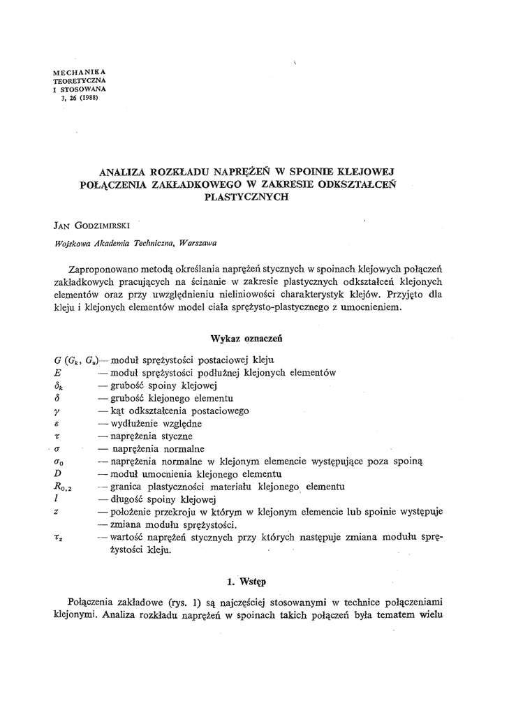 elementów oraz przy uwzglę dnieniu nieliniowoś ci charakterystyk klejów. P rzyję to dla