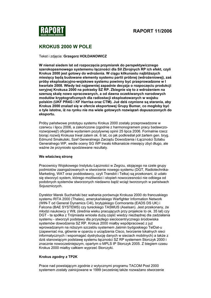 RAPORT 11/2006 KROKUS 2000 W POLE