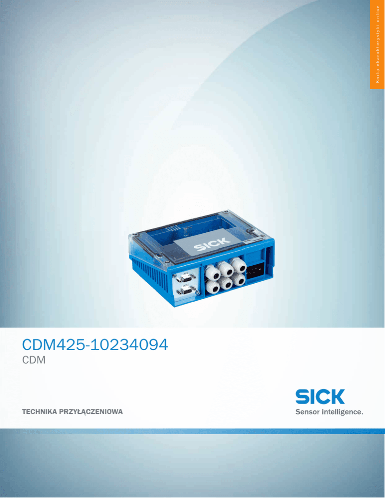 Karta charakterystyki online CDM425-10234094 CDM TECHNIKA PRZYŁĄCZENIOWA CDM425-10234094 | CDM TECHNIKA PRZYŁĄCZENIOWA A B C D E F Informacje do zamówienia Typ Nr artykułu CDM425-10234094 więcej wersji urządzeń i akcesoriów 1050643 www.sick.com/CDM Rysunek może się różnić Szczegółowe dane techniczne Cechy H I J K L M N O P Q R S T Krótki opis Moduł przyłączeniowy do dwóch czujników, dodatkowe gniazdo M12 do sieci PROFINET na osłonie przedniej. Redukcja dławnic kablowych z 6 do 4 sztuk, w zamian za to gniazdo M12 do magistrali CAN i wtyk M12 do podłączenia zasilania elektrycznego z przodu. Obsługiwane produkty CLV42x, CLV43x, CLV44x, CLV45x, CLV62x, CLV63x, CLV64x, CLV65x, ICR84x-2, ICR85x-2, RFH620 Obsługa modułu kopiowania (klonowania) (CMC) Nie Obsługa modułu wyświetlacza (CMD) Nie Obsługa modułu zasilania (CMP) Nie Obsługa modułu komunikacyjnego (CMF) Nie Interfejsy Szeregowa (RS-232, RS-422/-485) ✔, w zależności od podłączonego czujnika Magistrala CAN ✔, w zależności od podłączonego czujnika Wejścia przełączające W zależności od podłączonego czujnika Wyjścia przełączające W zależności od podłączonego czujnika Wskazania optyczne 4 LED (Dioda statusu i błędów) Program konfiguracyjny SOPAS ET Mechanika/elektryka Pobór mocy Pobór mocy bramy + 3,5 W i czujnika + 1 W Obudowa Polycarbonat Kolor obudowy Niebieski (RAL 5012) Stopień ochrony IP 65 (DIN 40 050) 1) Klasa ochrony III Masa 1.160 g Wymiary (dł. x szer. x wys.) 192 mm x 167 mm x 70 mm 1) 2 W przypadku zastosowania standardowego przewodu przyłączeniowego czytnika firmy SICK. ROZWIĄZANIA AUTOMATYCZNEJ IDENTYFIKACJI | SICK Karta charakterystyki online | 2016-10-28 19:31:13 Informacje mogą ulec zmianie bez powiadomienia CDM425-10234094 | CDM TECHNIKA PRZYŁĄCZENIOWA Przyłącze skanera 15-pinowe gniazdo D-Sub-HD Wtyk serwisowy 9-pinowy wtyk D-Sub (wewn.) 1) W przypadku zastosowania standardowego przewodu przyłączeniowego czytnika firmy SICK. Dane dotyczące otoczenia Temperatura otoczenia pracy –35 °C ... +40 °C Temperatura składowania –35 °C ... +70 °C Dopuszczalna względna wilgotność powietrza ± 90 %, bez kondensacji Klasyfikacje ECl@ss 5.0 27242208 ECl@ss 5.1.4 27242608 ECl@ss 6.0 27242608 ECl@ss 6.2 27242608 ECl@ss 7.0 27242608 ECl@ss 8.0 27242608 ECl@ss 8.1 27242608 ECl@ss 9.0 27242608 ETIM 5.0 EC001604 ETIM 6.0 EC001604 UNSPSC 16.0901 32151705 Zalecane akcesoria więcej wersji urządzeń i akcesoriów www.sick.com/CDM Krótki opis Typ Nr artykułu Przewód transmisji danych (RS-232) do komputera PC 2014054 Przewód łączący (wtyk-gniazdo) 2055420 Złącza wtykowe i przewody Głowica A: Gniazdo, D-Sub, 9 pinów, prosty Głowica B: Gniazdo, D-Sub, 9 pinów, prosty Przewód: szeregowe, nieekranowany, 3 m Do przyłącza komputera PC Głowica A: Gniazdo, M12, 17 pinów, prosty Głowica B: Wtyk, D-Sub-HD, 15 pinów, prosty Przewód: Power, szeregowe, CAN, cyfrowe we/wy, ekranowany, 3 m 2016-10-28 19:31:13 | Karta charakterystyki online Informacje mogą ulec zmianie bez powiadomienia ROZWIĄZANIA AUTOMATYCZNEJ IDENTYFIKACJI | SICK 3 Karta charakterystyki online SICK W SKRÓCIE Firma SICK należy do czołowych producentów inteligentnych czujników i rozwiązań wykorzystujących czujniki do zastosowań przemysłowych. Wyjątkowa gama produktów i usług stwarza idealną podstawę dla bezpiecznego i wydajnego sterowania procesami, ochrony ludzi przed wypadkami i unikania zanieczyszczenia środowiska. Mamy szerokie doświadczenie w różnych branżach i znamy występujące w nich procesy oraz wymagania. Nasze inteligentne czujniki zapewniają klientom dokładnie to, czego im potrzeba. W centrach aplikacji w Europie, Azji i Ameryce Północnej rozwiązania systemowe są testowane i optymalizowane pod kątem potrzeb konkretnych klientów. Wszystko to sprawia, że jesteśmy niezawodnym dostawcą i partnerem w zakresie rozwoju. Naszą ofertę dopełniają kompleksowe usługi: rozwiązania SICK LifeTime Services wspierają klientów w trakcie całego cyklu użytkowania maszyny i dbają o bezpieczeństwo i produktywność. Właśnie tak rozumiemy hasło „Sensor Intelligence”. BLISKO KLIENTA NA CAŁYM ŚWIECIE: Osoby kontaktowe i pozostałe lokalizacje - www.sick.com SICK AG |Waldkirch|Niemcy |www.sick.com