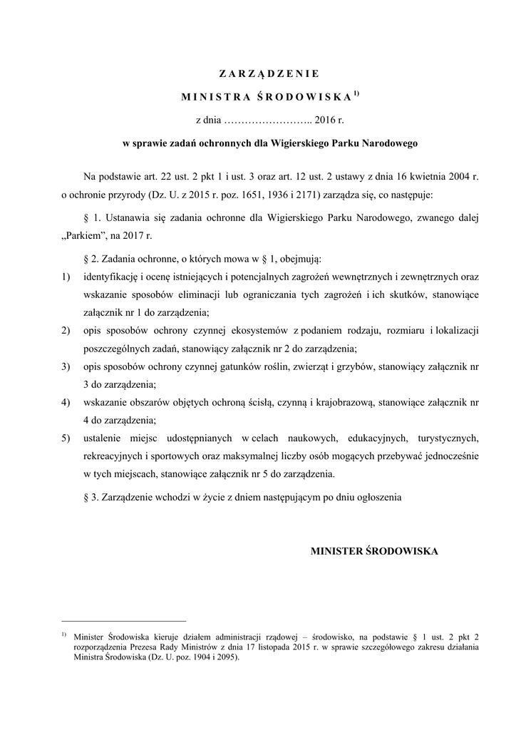 Projekt Zarządzenia Ministra Środowiska w sprawie zadań