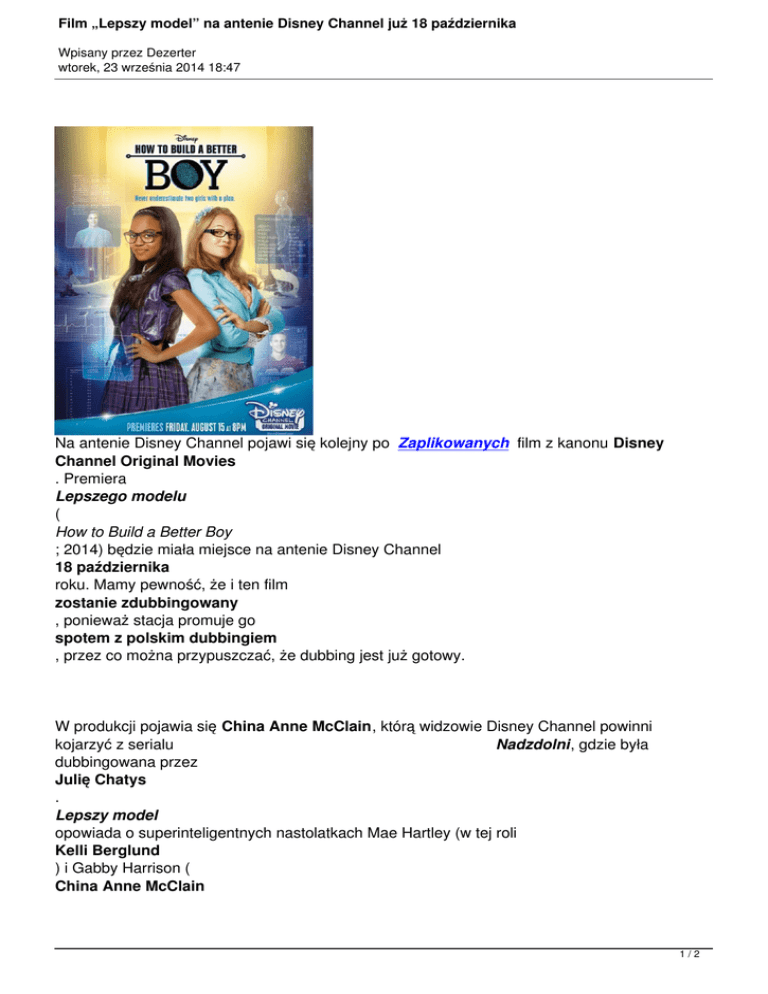 Film „Lepszy model” na antenie Disney Channel - Polski