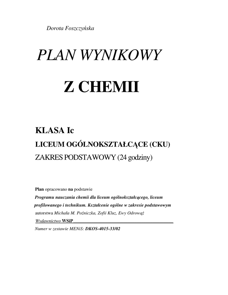 plan wynikowy z chemii