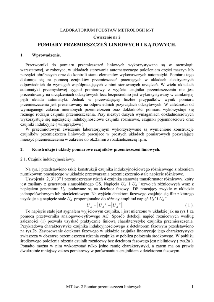 MT ćw. 2 Pomiar przemieszczeń liniowych