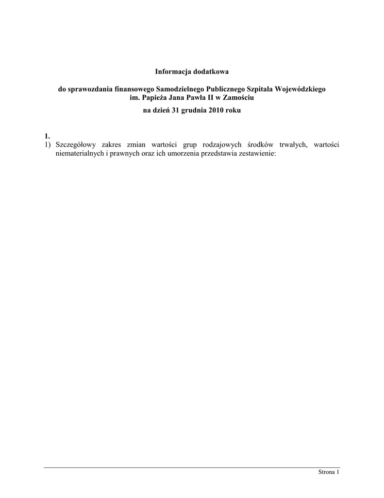 Informacja dodatkowa za 2010 r. - Samodzielny Publiczny Szpital