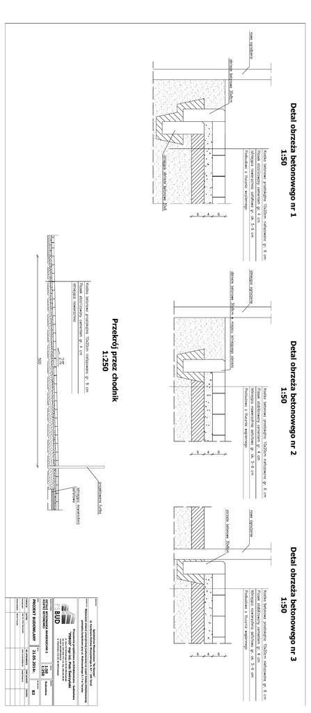 1:250 Przekró j przez ch odn ik 1:50 Detal obrze ża betonowe go nr