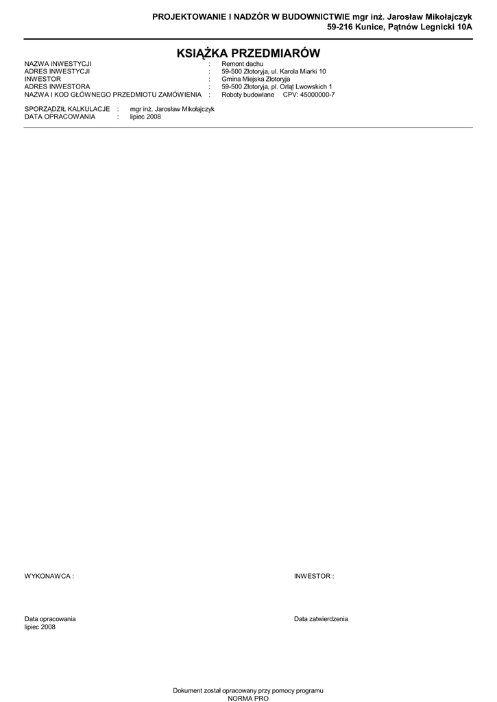 Przedmiar - BIP Gmina Miejska Złotoryja