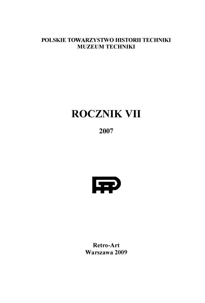 Tom finansowany przez Polskie Towarzystwo Historii Techniki, Muzeum