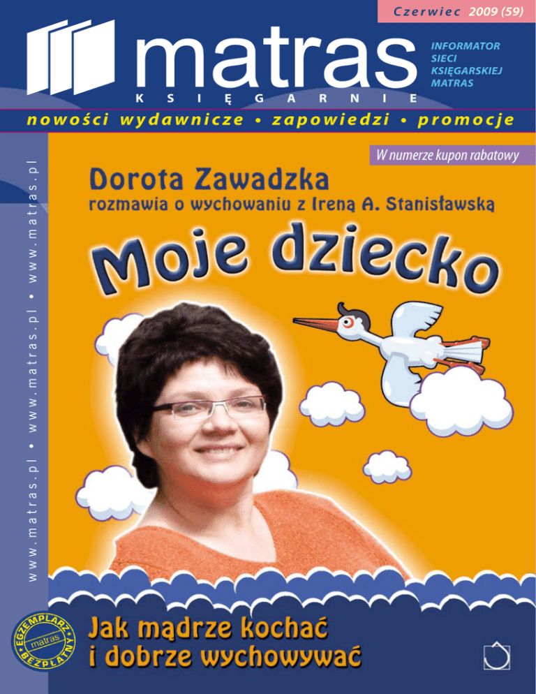 C z e r w i e c 2009 (59) informator sieci księgarskiej matras k s i ę g a r n i e w w w. m a t r a s . p l • w w w. m a t r a s . p l • w w w. m a t r a s . p l n o w o śc i w y d a w n i c z e • z a p o w i e d z i • p r o m o c j e W numerze kupon rabatowy Czerwiec 2009 TOP MATRASA • MAJ 2009 1. Głowa minotaura 6. Przed świtem 2. Anioły i demony 7. Zwycięzca jest sam 3. Zmierzch 8. Dziewczyna która igrała z ogniem 4. Księżyc w nowiu 9. Szepty zmarłych 5. Zaćmienie 10. Nie potrafię schudnąć Marek Krajewski W.A.B. TOP Matrasa Dan Brown Albatros/Sonia Draga Stephanie Meyer Dolnośląskie Stephanie Meyer Dolnośląskie Stephanie Meyer Dolnośląśkie Stephanie Meyer Dolnośląskie Paulo Coelho Drzewo Babel Stieg Larsson Jacek Santorski & Co Simon Beckett Amber Pierre Dukan Otwarte 11. Miłość nad rozlewiskiem Małgorzata Kalicińska, Zysk i S-ka 16. Łups Terry Pratchett, Prószyński i S-ka 12. Dom nad rozlewiskiem Małgorzata Kalicińska, Zysk i S-ka 17. Lektor Bernhard Schlink, Muza 13. Dlaczego pingwinom nie marzną stopy Mick O`Hare, Insignis 18. Tajemnica Gaudiego Esteban Martin i Andreu Carranza, Muza 14. Powroty nad rozlewiskiem Małgorzata Kalicińska, Zysk i S-ka 19. Arktyczna mgła Clive Cussler, Amber 15. Bikini Janusz L. Wiśniewski, Świat Książki 20. Sekret Rhonda Byrne, Nowa Proza www.matras.pl • www.matras.pl • www.matras.pl • www.matras.pl • www.matras.pl nowości wydawnicze www.matras.pl • www.matras.pl • www.matras.pl • www.matras.pl • www.matras.pl nowości wydawnicze Czerwiec 2009 www.matras.pl • www.matras.pl • www.matras.pl • www.matras.pl • www.matras.pl STRACH SIĘ BAĆ... Historia prawdziwa – Tak?! Pragnę książki, która stanie się moim przyjacielem i towarzyszem. Takiej, którą gdy raz już Anna Maria Lewandowska wezmę do ręki to nie zamknę aż przeczytam ostatnie słowo. Takiej, przy której będę czułą się bezpieczna. Pozwolą panie – przerwała kobieta-klient. Nie patrzyła na pracownice księgarni, myślami szybowała gdzieś ponad ich głowami. Mówiła do siebie, pytała i odpowiadała sobie sama jakby zamknięta w swoim tajemniczym, bezszelestnym i nienamacalnym świecie. – Pozwolą panie – powtórzyła – w takim razie biorę wszystkie! Uśmiechnęła się nieśmiało, ale stanowczo. – Rozumiemy – odparła Marianna. W tym momencie przerwę na chwilę opowieść, aby przedstawić sylwetkę jednej z naszych koleżanek-księgarek. Marianna to rezolutna, przebojowa i pracowita dziewczyna, o silnym charakterze, wygadana i przekonująca - ale przede wszystkim najodważniejsza i najdzielniejsza istota pod słońcem (Toskanii). Tak się nam przynajmniej wydawało! – Rozumiemy – powtórzyła Marianna. – To tak jak z człowiekiem, który boi się przejść nocą przez cmentarz. Zawsze raźniej i bezpieczniej w towarzystwie drugiego człowieka. Zgodzi się pani ze mną? – zapytała Marianna. Kobieta-klient nie od razu udzieliła odpowiedzi. Spłoszyła się. Zapakowała książki do kwiecistej niebiesko-fioletowej torby, dygnęła i skoczyła ku drzwiom. W progu jednak odwróciła się i rzekła: – Tak, zgadzam się z panią... Dokładnie jak z człowiekiem, który boi się przejść nocą przez cmentarz. Też się kiedyś bałam, gdy żyłam. Co było dalej? Wielcy filozofowie i mędrcy nie są w stanie udzielić odpowiedzi. Pewne jest tylko jedno: Marianna już nie jest najodważniejszą i najdzielniejszą dziewczyną świata! Jaki morał płynie z tej opowieści? Niektórzy klienci są jak drzazga w małym palcu, jak uwierający kamyk w bucie. Działają na nas jak czerwona płachta na byka. Czasem z nerwów złapie cię kolka, zaschnie ci w gardle, dostaniesz czkawki... I co? I wystarczy, że pod koniec dnia uświadomisz sobie jak bardzo kochasz to, co robisz, a najbardziej, że kochasz tych klientów, którzy stają się dla ciebie inspiracją do napisania bajki. z notatnika księgarza Praca księgarza to zajęcie dla ludzi o mocnych nerwach. Dla osób wyrozumiałych, cierpliwych, uśmiechających się do świata, optymistycznych, ale przede wszystkim dla tych, którzy potrafią odnaleźć się w każdej – nawet najbardziej zaskakującej i nieprawdopodobnej – sytuacji. Aby opowiedzieć historię Marianny, muszę cofnąć się pamięcią do czasów odległych, będących początkiem mojej kariery księgarza. Otóż za górami, za lasami, na wznoszącym się ponad wieżami kościołów, zielonym, kwitnącym makiem wzgórzu stała mała księgarenka, a w tej księgarence pracowały cztery olśniewające, wielce urodziwe niewiasty. Jak co dzień, cztery przepiękne pracownice księgarni układały książki, przyjmowały towar, wycierały kurze na półkach, sporządzały zamówienia, obsługiwały klientów. Wydawać by się mogło, że był to dzień jak każdy inny. Wtem w jednej krótkiej chwili pogoda za oknem zmieniła się. Słońce przykryła ogromna, czarna chmura, z której lunął deszcz. Zrobiło się zimno, ciemno i wietrznie. Krople deszczu niczym przynoszące śmierć pociski uderzały w okna, wiatr z niewyobrażalną siłą i premedytacją wdzierał się do pomieszczenia. Lodowaty chłód przemykał po plecach, włos jeżył się na głowie, oczy zachodziły mgłą, oddechy były przyspieszone i drżące. Aż nagle drzwi od księgarni otworzyły się i w progu stanęła ona – kobieta-klient. Długi aksamitny płaszcz okrywał jej wątłe ciało. Włosy koloru miedzi skrywała pod niewielkim kapeluszem koloru lila-róż. Jej twarz była biała, wręcz przezroczysta. Uniosła delikatnie głowę i rozejrzała się dookoła. Zrobiła krok do przodu, otrzepała resztki kropel, które spływały po jej barokowej parasolce, uśmiechnęła się wyniośle i przemówiła: – Poszukuję pięknej, mrocznej i intrygującej historii, o miłości nieszczęśliwej, trudnej, o uczuciu, które oczyszcza i zniewala człowieka. Książki, która wypełni czas w długie, sa