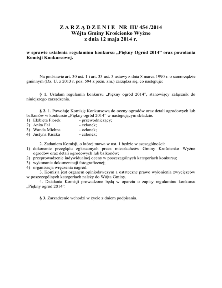 Zarządzenie Nr III/454/2014 - Urząd Gminy Krościenko Wyżne