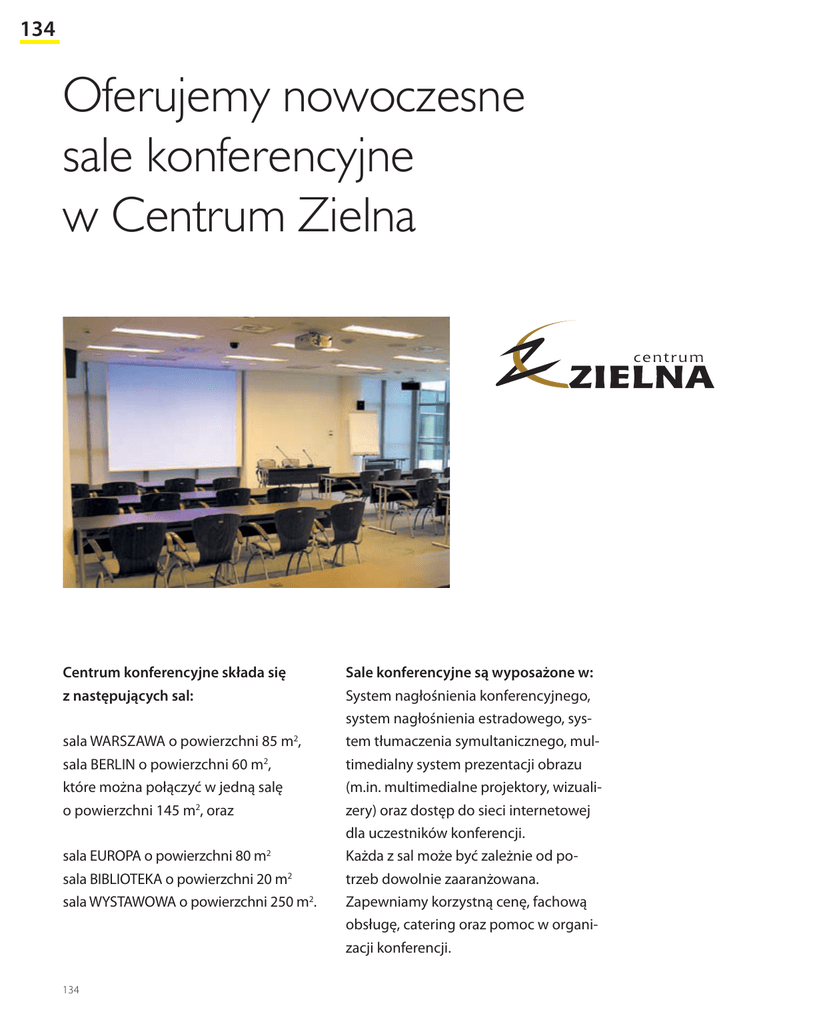 Oferujemy nowoczesne sale konferencyjne w Centrum Zielna