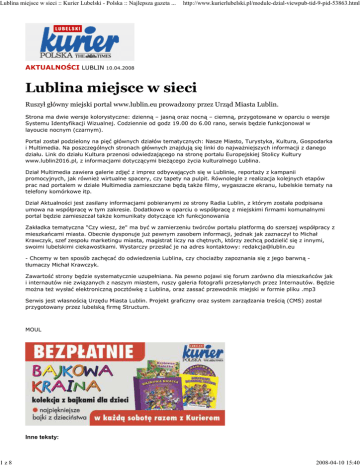 Kurier Lubelski - "Lublina miejsce w sieci"