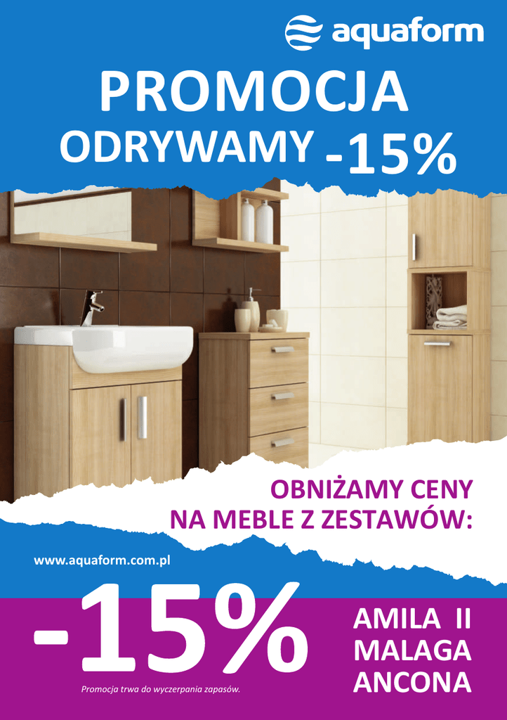 PROMOCJA ODRYWAMY -15% OBNI¯AMY CENY NA MEBLE Z ZESTAWÓW: www.aquaform.com.pl Promocja trwa do wyczerpania zapasów. AMILA II MALAGA ANCONA LUSTRO SZAFKA WYSOKA DOSTÊPNE KOLORY: tabac cherry legno ciemne (opcja pod kosz) DOSTÊPNE KOLORY: tabac cherry legno ciemne PÓ£KA DOSTÊPNE KOLORY: tabac cherry legno ciemne UMYWALKA PRIMO 65 DOSTÊPNE KOLORY: bia³y SZAFKA NISKA DOSTÊPNE KOLORY: tabac cherry legno ciemne SZAFKA PODUMYWALKOWA 65 DOSTÊPNE KOLORY: tabac cherry legno ciemne AMILA II OSZCZÊDZASZ NAWET DO 136 Z£ NA JEDNEJ SZAFCE SZAFKA WYSOKA (opcja pó³ka) UMYWALKA MADALENA 50 UMYWALKA PRIMO 55 DOSTÊPNE KOLORY: DOSTÊPNE KOLORY: bia³y bia³y DOSTÊPNE KOLORY: tabac cherry legno ciemne SZAFKA PODUMYWALKOWA 50 SZAFKA PODUMYWALKOWA 55 DOSTÊPNE KOLORY: DOSTÊPNE KOLORY: tabac cherry legno ciemne tabac cherry legno ciemne PROMOCJA dotyczy ka¿dego z wymienionych produktów. KOSZ DO SZAFKI WYSOKIEJ DOSTÊPNE KOLORY: bia³y -15% Wszystkie wymienione elementy mo¿na zakupiæ osobno. LUSTRO DOSTÊPNE KOLORY: tabac cherry legno ciemne choco bia³y UMYWALKA IDA 40 DOSTÊPNE KOLORY: bia³y SZAFKA PODUMYWALKOWA (lewa i prawa) DOSTÊPNE KOLORY: tabac cherry legno ciemne choco bia³y OSZCZÊDZASZ NAWET DO MALAGA 60 Z£ BIA£Y PROMOCJA trwa do wyczerpania zapasów. TABAC CHERRY LEGNO CIEMNE O szczegó³y promocji zapytaj sprzedawcê. CHOCO NA JEDNEJ SZAFCE LUSTRO DOSTÊPNE KOLORY: ANCONA tabac cherry legno ciemne SZAFKA WYSOKA DOSTÊPNE KOLORY: tabac cherry legno ciemne PROMOCJA dotyczy ka¿dego z wymienionych produktów. KONSOLA PODUMYWALKOWA (lewa i prawa) Wszystkie wymienione elementy mo¿na zakupiæ osobno. DOSTÊPNE KOLORY: tabac cherry legno ciemne SZAFKA NISKA Z SZUFLADAMI DOSTÊPNE KOLORY: tabac cherry legno ciemne OSZCZÊDZASZ NAWET DO 164 Z£ NA JEDNEJ SZAFCE UMYWALKA INEZ 53 UMYWALKA CATRINE 60 DOSTÊPNE KOLORY: DOSTÊPNE KOLORY: bia³y PROMOCJA bia³y -15% trwa do wyczerpania zapasów. O szczegó³y promocji zapytaj sprzedawcê.