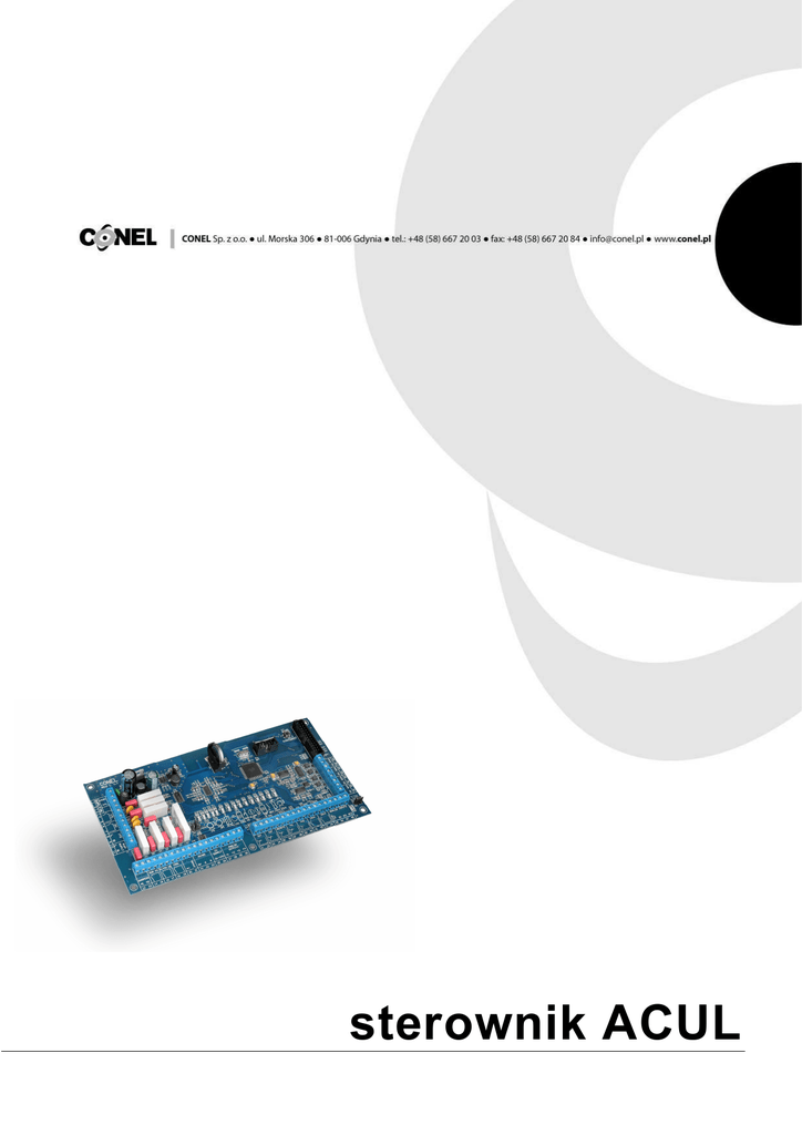 sterownik ACUL s t e r o w n i k AC U L I. DANE TECHNICZNE............................................................................................................................................. 2 1 Budowa ................................................................................................................................................................. 2 2 Dane znamionowe................................................................................................................................................ 3 II. INSTRUKCJA UŻYTKOWANIA........................................................................................................................... 4 1 Opis elementów sterujących i kontrolnych....................................................................................................... 4 2 Uruchomienie sterownika ................................................................................................................................... 5 3 Konfiguracja kalendarza ..................................................................................................................................... 6 3.1 Przykład programowania kalendarza.............................................................................................................. 7 III. Instrukcja zaawansowana ............................................................................................................................... 10 1 Opis działania ..................................................................................................................................................... 10 1.1 Układ odzysku ................................................................................................................................................. 10 1.2 Sterowanie nagrzewnicą ................................................................................................................................ 10 1.3 Sterowanie chłodnicą ..................................................................................................................................... 10 1.4 Sterowanie silnikami wentylatorów .............................................................................................................. 10 1.5 Sterowanie przepustnicami ........................................................................................................................... 10 1.6 Algorytm regulacji temperatur....................................................................................................................... 11 1.7 Sygnalizacja..................................................................................................................................................... 12 1.8 Zabezpieczenia................................................................................................................................................ 12 1.9 Współpraca z urządzeniami zewnętrznymi .................................................................................................. 14 2 Opis wejść i wyjść sterownika.......................................................................................................................... 17 3 Szczegółowy opis funkcji sterownika.............................................................................................................. 18 1 s t e r o w n i k AC U L Sterownik central nawiewno-wywiewnych ACUL Sterownik ACUL przeznaczony jest do układów automatyki sterujących pracą central nawiewno-wywiewnych. Realizowane funkcje: • • • • • • • • • • • • • • • • • • kontrola temperatury w pomieszczeniu ograniczenie temperatury nawiewu kontrola wilgotności w pomieszczeniu ograniczenie wilgotności w kanale sterowanie nagrzewnicą wodną lub elektryczną sterowanie chłodnicą sterowanie układem odzysku sterowanie nawilżaczem zabezpieczenie termiczne silników wentylatorów zabezpieczenie przeciwzamrożeniowe nagrzewnicy wodnej zabezpieczenie nagrzewnicy elektrycznej sygnalizacja uszkodzenia chłodnicy sterowanie przepustnicami kontrola stanu filtrów współpraca z urządzeniami zewnętrznymi funkcja kalendarza funkcja serwisowa protokół komunikacyjny MODBUS I. DANE TECHNICZNE 1 Budowa Sterownik ACUL składa się z płytki drukowanej nieobudowanej i wyświetlacza z panelem operatorskim. Płytka spełnia funkcję jednostki centralnej i listwy podłączeniowej dla elementów peryferyjnych. Każda złączka opisana jest w czytelny sposób cyfrą, symbolem literowym i graficznym elementu podłączanego pod dany zacisk. Dzięki takiemu rozwiązaniu użytkownik oszczędza miejsce i czas. Do dyspozycji użytkownika przewidziane są: Wejścia cyfrowe: Wejścia analogowe/ uniwersalne Wejścia pomiarowe Wyjścia cyfrowe Wyjścia analogowe Wyjście komunikacyjne zabezpieczenie silników presostaty różnicowe (filtrów i wentylatorów) alarm nagrzewnicy zdalne sterowanie wsp. z centralą pożarową sygnał 0÷10V/ styk 2 2 1 1 1 2 wejścia wejścia wejście wejście wejście wejścia czujniki temperatury PT 1000 sterowanie wentylatorów sterowanie pompy czynnika grzewczego sterowanie siłowników przepustnic sygnał pracy dla ukł. zewnętrznych sygnał alarmu dla ukł. zewnętrznych sygnał zapotrzebowania na chłód sygnał 0÷10V lub PWM RS 485 – protokół MODBUS 4 2 1 2 1 1 1 4 wejścia wyjścia wyjście wyjścia wyjście wyjście wyjście wyjścia 2 s t e r o w n i k AC U L 2 Dane znamionowe Zasilanie Temperatura otoczenia Temperatura przechowywania Wejścia pomiarowe - rezystancyjne Wejścia analogowe Wejścia sygnałowe: 1M1(TK1), 2M1(TK2), 1S1H, 2S1H, S2F, REMOTE[Zezwolenia], S1F Wyjścia sygnałowe: RUN[Praca] (H2), ALARM(H1), COOL[Chłodzenie]* Wyjścia sterujące: 1M1, 2M1 Wyjścia sterujące: 1M2 Wyjścia sterujące: DAMPERS[Przepustnice] (M1, M2) ANALOG OUTPUTS [Wyjścia analogowe i PWM]: Y1, Y2, Y3, Y4 NAPIĘCIE STERUJĄCE 0V – 24V AC Wym