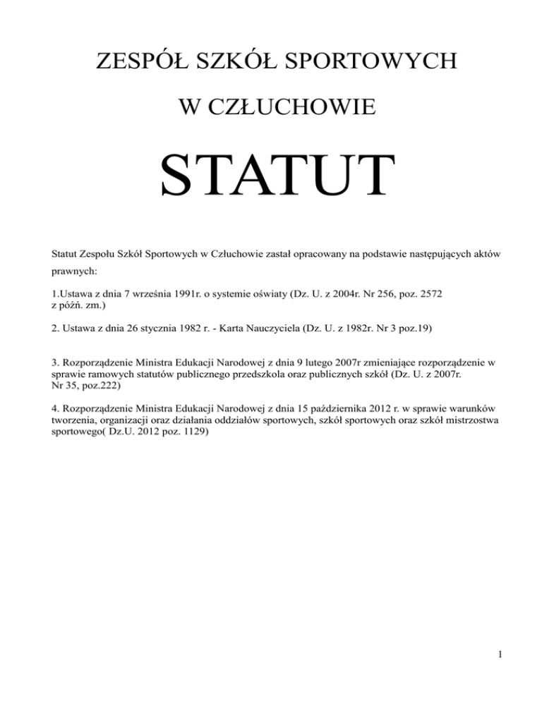 Statut - Zespół Szkół Sportowych w Człuchowie