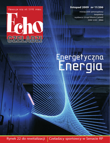 listopad 2009 nr 11/206 miesięcznik samorządowy bezpłatny wydawca: Urząd Miasta Czeladź ISSN 1234 – 4966 Energetyczna Energia Rynek 22 do rewitalizacji Czeladzcy sportowcy w Senacie RP Echo Czeladzi miesięcznik samorządowy Nr 11/206 listopad 2009 WAŻNE SPRAWY www.czeladz.pl Wydawca: Urząd Miasta Czeladź Siedziba redakcji: Urząd Miasta 41-250 Czeladź, ul. Katowicka 45 tel. 032 76 37 981 Redakcja: Wiesława Konopelska (redaktor naczelna, e-mail: [email protected]), Wojciech Maćkowski Proj. okładki, oprac. graficzne i skład: Teresa Strojniak Na okładce: praca „Energia” Sławomira Brzoski w GSW Elektrownia, foto: Olgierd Górny Druk: Wydawnictwo TRIADA Nakład: 6 tysięcy egz. Ogłoszenia bezpłatne i materiały do kolejnego wydania należy dostarczać do pierwszego dnia danego miesiąca. Redakcja zastrzega sobie prawo dokonywania zmian i skracania dostarczonych materiałów oraz nadesłanej korespondencji. Święto Niepodległości w strugach deszczu U roczystości związane z obchodami Święta Niepodległości rozpoczęła o godz. 10.00, w kościele św. Stanisława BM, msza święta w intencji Ojczyzny z udziałem m.in. senatora RP Zbigniewa Szaleńca, władz samorządowych miasta i radnych Rady Miejskiej, celebrowana przez ks. kanonika Jarosława Wolskiego. Patriotycznego charakteru nabożeństwu nadała obecność pocztów sztandarowych Miasta Czeladź, Rady Miejskiej, Związku Kombatantów, górników, organizacji społecznych i czeladzkich szkół, a także udział górniczej orkie- ZA TREŚĆ OGŁOSZEŃ REDAKCJA I WYDAWCA NIE ODPOWIADAJĄ. ISSN 1234-4966 Ukazuje się 20. każdego miesiąca listopad 2009 nr 11/206 stry dętej i młodej wokalistki z zespołu Mini Babki z Miejskiego Zespołu Szkół. Następnie na placu Konstytucji odbyła się druga część uroczystości. Zgromadzonych powitał burmistrz Marek Mrozowski, a okolicznościowe przemówienie wygłosił przewodniczący Rady Miejskiej Sławomir Święch. Mimo niesprzyjającej pogody, kolejka składających kwiaty pod obeliskiem pamięci czeladzian poległych w walce o niepodległość Polski, była bardzo długa. Na zakończenie burmistrz przekazał wszystkim zgromadzonym życzenia z okazji narodowego Święta Polski nadesłane przez władze miasta partnerskich, a także podziękowania od burmistrza Żydaczowa Michała Szczujki za przesłaną przez czeladzian pomoc medyczną. W akcję pomocy dla Żydaczowa zaangażowali się m.in. pracownicy Urzędu Miasta, jednostek organizacyjnych i zakładów budżetowych, placówek oświatowych i parafianie parafii św. Stanisława BM. Wszystkim za hojność dziękował burmistrz Marek Mrozowski. Tradycyjnie po zakończeniu uroczystości burmistrz zaprosił kombatantów i wszystkich zgromadzonych na spotkanie w sali Ochotniczej Straży Pożarnej. Po raz pierwszy z okazji Święta Niepodległości Urząd Miasta zorganizował na placu przy ulicy Miasta Auby „Piknik Niepodległości”. Niestety, ulewny deszcz nie sprzyjał miłośnikom piosenek Abby w wykonaniu zespołu Dancing Queen i Blue Skay, za to powodzeniem cieszyła się gorąca, wojskowa grochówka. (wK) miesięcznik samorządowy bezpłatny wydawca: Urząd Miasta Czeladź ISSN 1234 – 4966 Energetyczna Energia Zachodnia Ukraina boryka się od kilku tygodni z epidemią grypy. Czeladzianie postanowili zorganizować pomoc dla mieszkańców ukraińskiego miasta partnerskiego – Żydaczowa. W ciągu kilku dni udało się zebrać ponad 20 tys. złotych przeznaczonych na zakup leków oraz maseczek ochronnych. Całość darów została przekazana za pośrednictwem konsula ukraińskiego w Krakowie do Żydaczowa. Transportem medykamentów zajęły się Polskie Koleje Państwowe. Chciałbym podziękować wszystkim osobom, które włączyły się do akcji i dzięki któ- mareK mroZowSKi BUrmiStrZ cZeLadZi POLSKA FEDERACJA ORNITOLOGICZNA i MIASTO CZELADŹ 72 ORNITOLOGICZNE MISTRZOSTWA POLSKI WYSTAWA KANARKÓW I PTAKÓW EGZOTYCZNYCH Rynek 22 do rewitalizacji Czeladzcy sportowcy w Senacie RP W numerze m.in.: • Rynek 22 – rewitalizacja do 2012 roku ................. str 4 • Czy wykorzystamy ciepło wód kopalnianych?... str 5 • Czeladzcy sportowcy w Senacie ......................... str 7 • MOPS – „Bez ograniczeń” – kontynuacja programu ................................................... str 7 • Traffic dla rolkarzy i deskorolkarzy ......... str 10 • Spotkanie z Mariuszem Krajewskim w MBP............................... str 12 ECHO CZELADZI listopad 2009 listopada przypadała 91. rocznica odzyskania niepodległości przez Polskę. Z tej okazji podobnie jak w latach poprzednich spotkaliśmy się na mszy świętej za Ojczyznę celebrowanej przez ks. kanonika Jarosława Wolskiego – proboszcza parafii p.w. św. Stanisława BM, a następnie pochodem, wśród pocztów sztandarowych przeszliśmy na plac Konstytucji. Mimo ulewnego deszczu, który towarzyszył rocznicowym obchodom, spora liczba mieszkańców uczestniczyła w uroczystościach. Pod pomnikiem głos, w okolicznościowym wystąpieniu, zabrał przewodniczący Rady Miejskiej Sławomir Święch, a następnie przybyłe delegacje złożyły wiązanki kwiatów. rym udało się nam uzbierać tą sporą kwotę. Przede wszystkim pragnę podziękować ks. Wolskiemu, który przekazał na ten cel część datków zbieranych w czasie niedzielnej mszy, dziękuje także panu Krzysztofowi Wortolcowi właścicielowi sieci aptek „Europejska”, który nie tylko przekazał na zakup pewną kwotę, ale także ułatwiał nam zakup medykamentów, podziękowania należą się również pani Natalii Nowaczyk z „Apteki Leków Gotowych” oraz ZIK Sp. z o.o. oraz jej prezesowi Jerzemu Górniakowi. Naszą akcję wsparli także senator Zbigniew Szaleniec, radny Krzysztof Francikowski, wójt Mierzęcic Krzysztof Kobiałka oraz Szkoła Podstawowa nr 7 i Miejski Zespół Szkół. Koordynatorami całej zbiórki i jednocześnie osobami wyjątkowo w nią zaangażowanymi byl