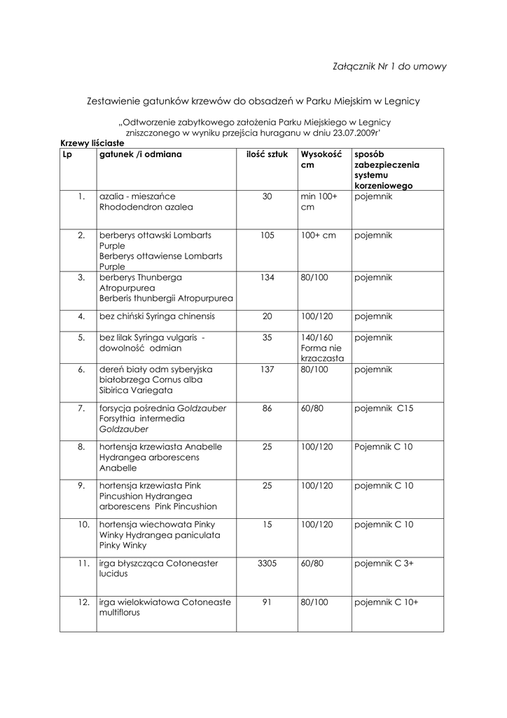 załącznik nr 1 - wykaz krzewów