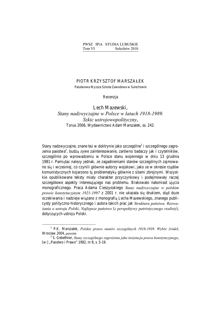 Recenzja Lech Mażewski, Stany nadzwyczajne w Polsce w latach