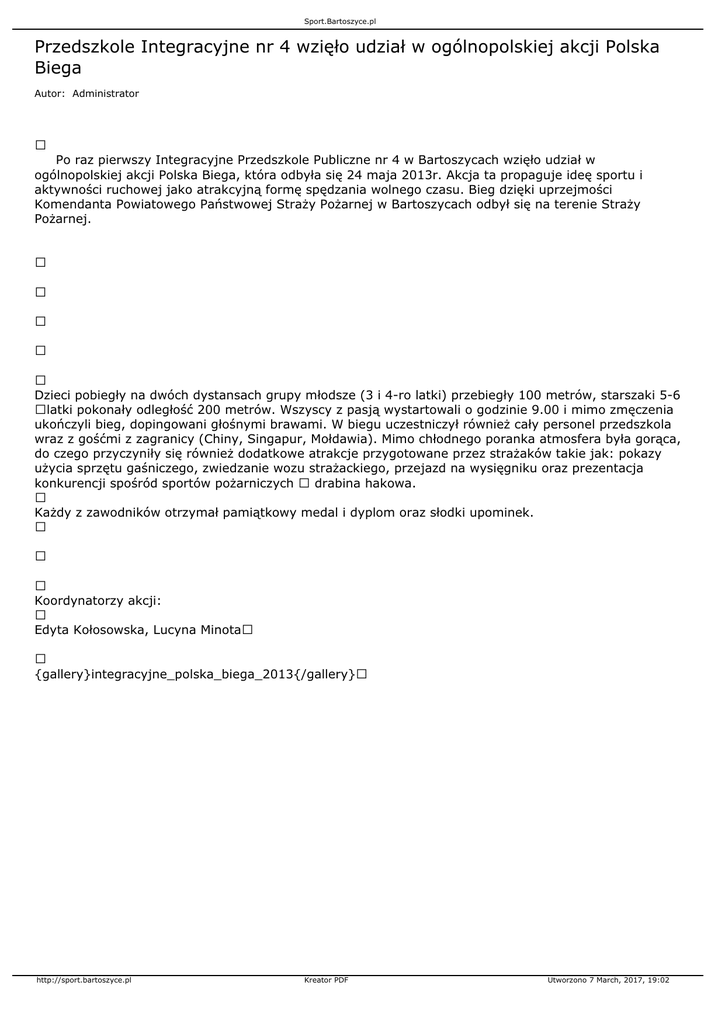 ogólnopolskiej akcji Polska Biega, która odbyła się 24 maja 2013r. Akcja ta propaguje ideę sportu i