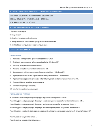 7. Algorytmy szeregowania procesów interaktywnych dla systemów Linux i Windows NT.
