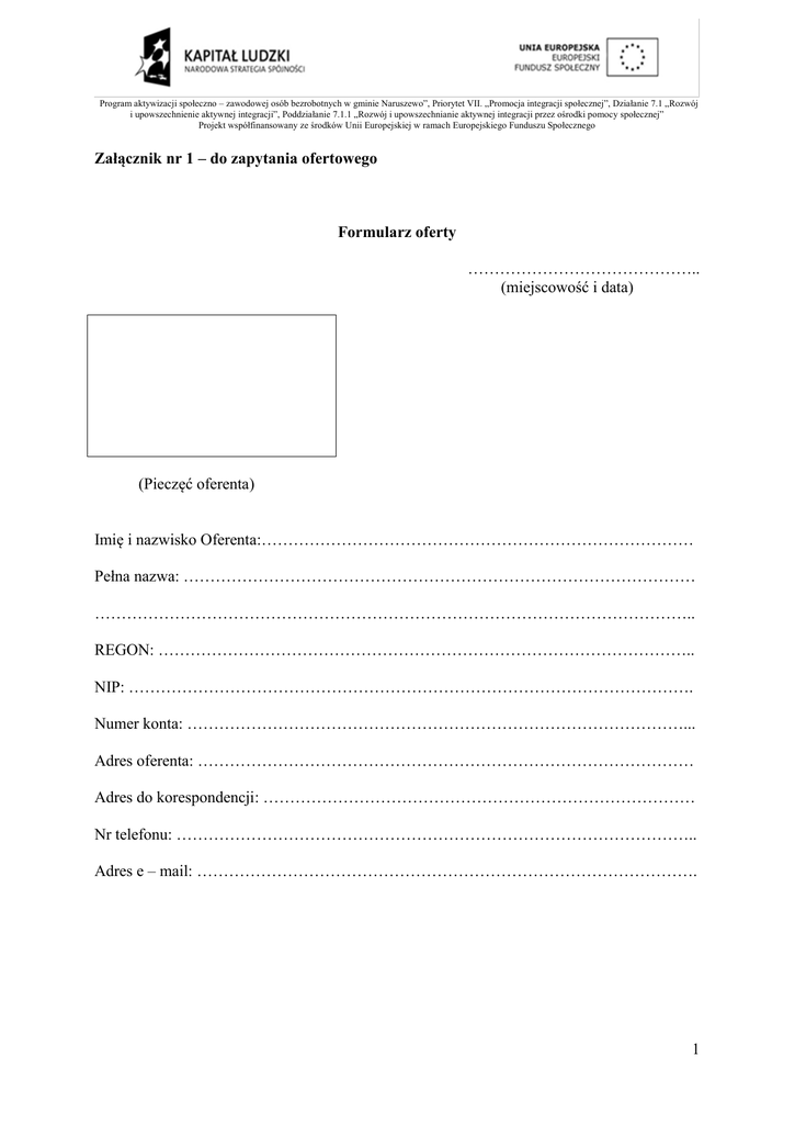 załącznik nr 1 do zapytania ofertowego
