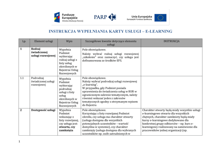 instrukcja wypełniania karty usługi – e-learning