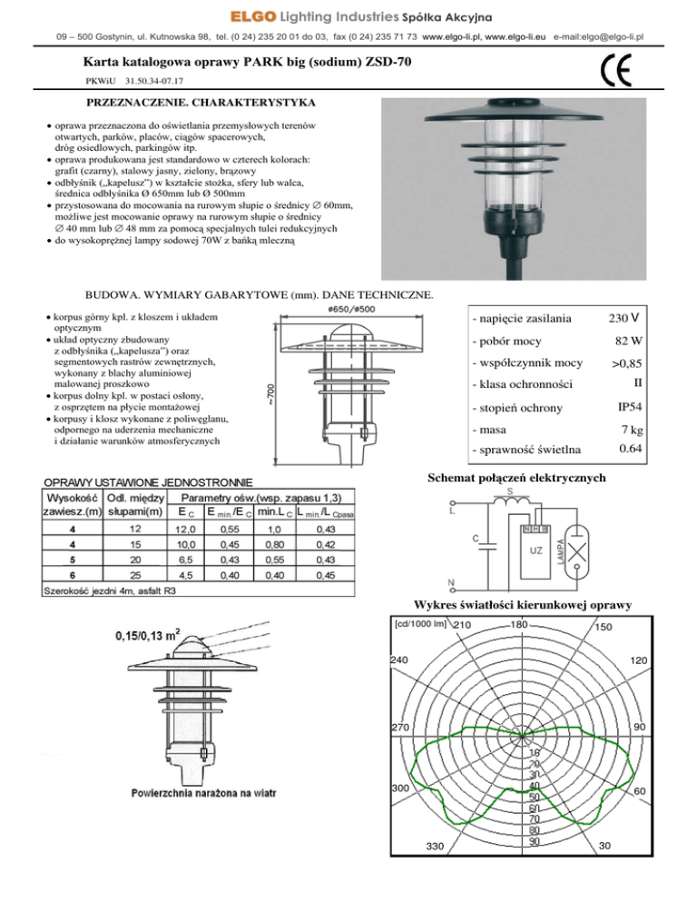 Karta katalogowa oprawy PARK big (sodium) ZSD-70