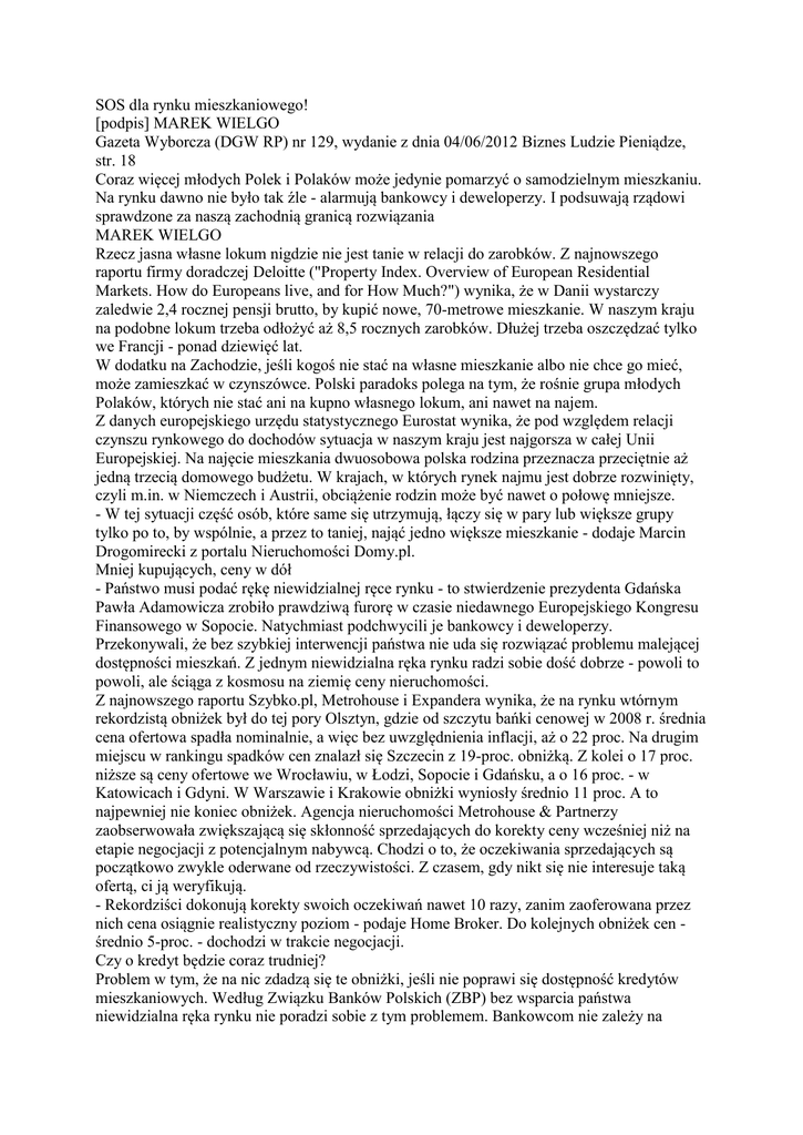 raportu firmy doradczej Deloitte ("Property Index. Overview of European Residential