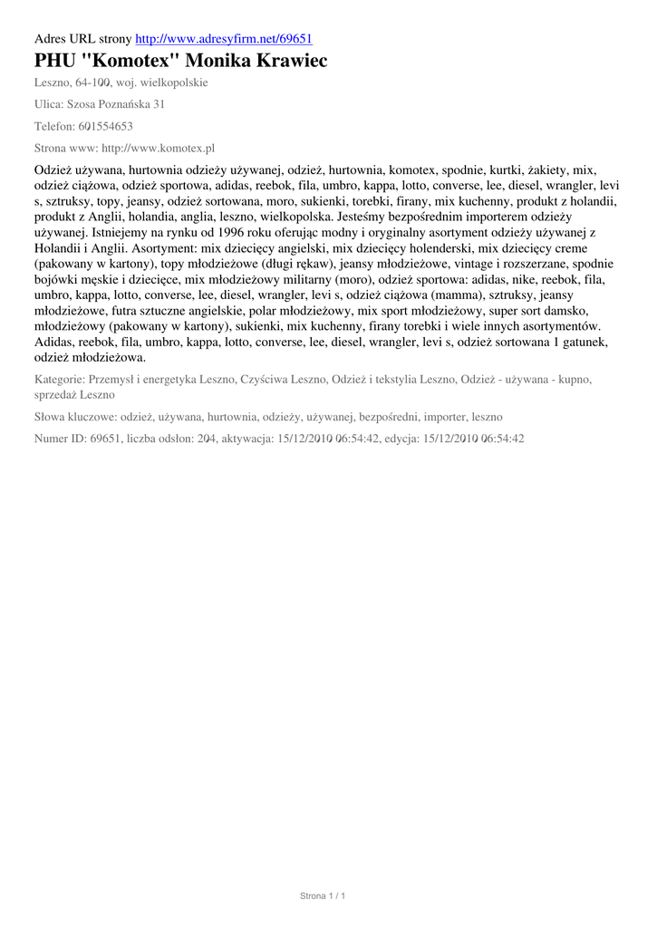 PHU "Komotex" Monika Krawiec, Leszno, Szosa Poznanska 31