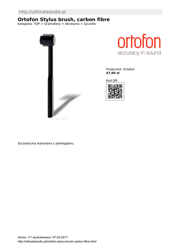 http://ultimateaudio.pl Ortofon Stylus brush, carbon fibre kategoria: TOP > Gramofony > Akcesoria > Szczotki Producent: Ortofon 47,00 zł Kod QR: Szczoteczka wykonana z poliwęglanu. strona: 1/1 wydrukowano: 07-03-2017 http://ultimateaudio.pl/ortofon-stylus-brush-carbon-fibre.html