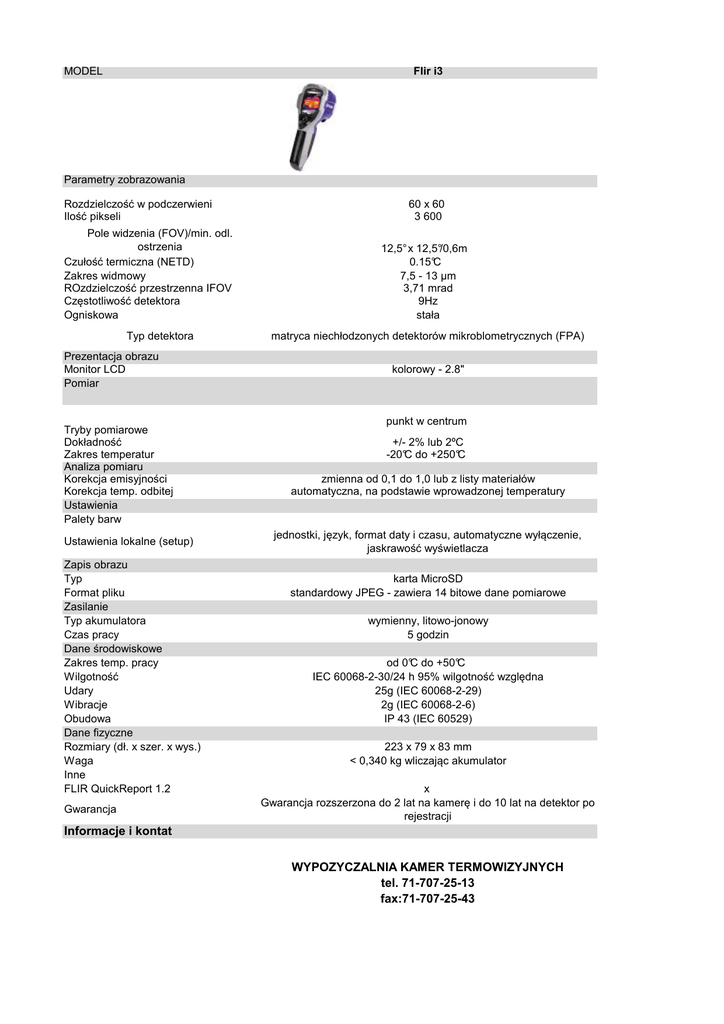 flir i3 - Wypożyczalnia Kamer Termowizyjnych