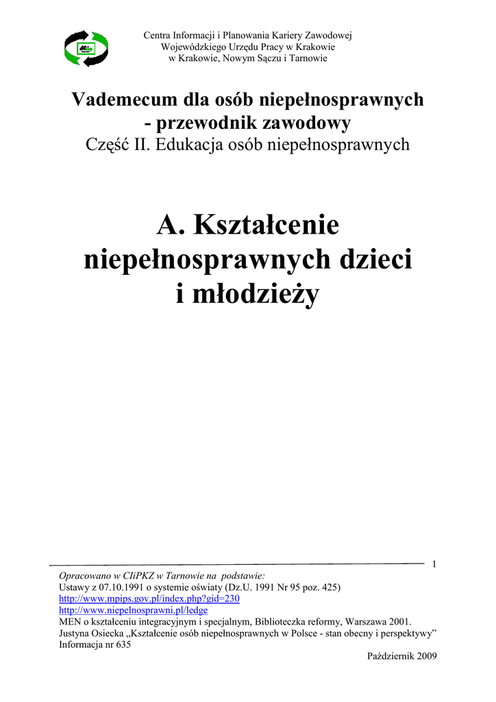 II.A Kształcenie niepełnosprawnych dzieci i młodzieży