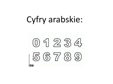 Cyfry arabskie: Cyfry rzymskie: M, D, C, L, X, V, I. Liczby naturalne N to: 0,1,2,3,….9,10,11, itd. Liczby całkowite C to wszystkie całości: dodatnie, ujemne i zero. Liczby wymierne W to liczby, które można zapisać w postaci ułamka zwykłego, o całkowitym liczniku i mianowniku. Mianownik nie może być zerem. Jakie rozwinięcia mają liczby wymierne? 2 rodzaje: albo skończone, albo nieskończone i okresowe. Liczby niewymierne NW najczęściej są zapisane w postaci pierwiastka: np.: Jakie rozwinięcia mają liczby niewymierne? Nieskończone i nieokresowe. Liczby rzeczywiste R to wszystkie liczby, jakie ludzie znają. Pokazujemy je na osi liczbowej. Zbiory liczbowe przedstawione za pomocą grafów: Zbiory liczbowe na osi liczbowej: Rozwiń ułamek zwykły Zaokrąglij rozwinięcie do części tysiącznych. Jakie liczby nazywamy przeciwnymi? Liczby o przeciwnych znakach, np. +5 i -5 Jakie liczby nazywamy odwrotnymi? Liczby, które po pomnożeniu zawsze dają wynik równy 1, Np.. -4 i -1/4. Egzamin z matematyki 2013 r. Potęgi Oblicz w pamięci: 49 625 1 15 256 81 225 324 121 169 625 0,00032 1000000 -8000 0,0009 Pierwiastki kwadratowe: 5/11 10 13 15 25 16 7/6 0,2 Pierwiastki sześcienne: 10 2/5 -3 0,4 6 Dziękuję za uwagę. Ilona Tubek Ilustracje zamieszczone w prezentacji nie są mojego autorstwa – pochodzą ze zbiorów internetowych.