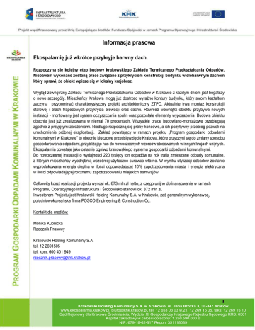 Informacja prasowa - Ekologiczna Spalarnia Odpadów w Krakowie