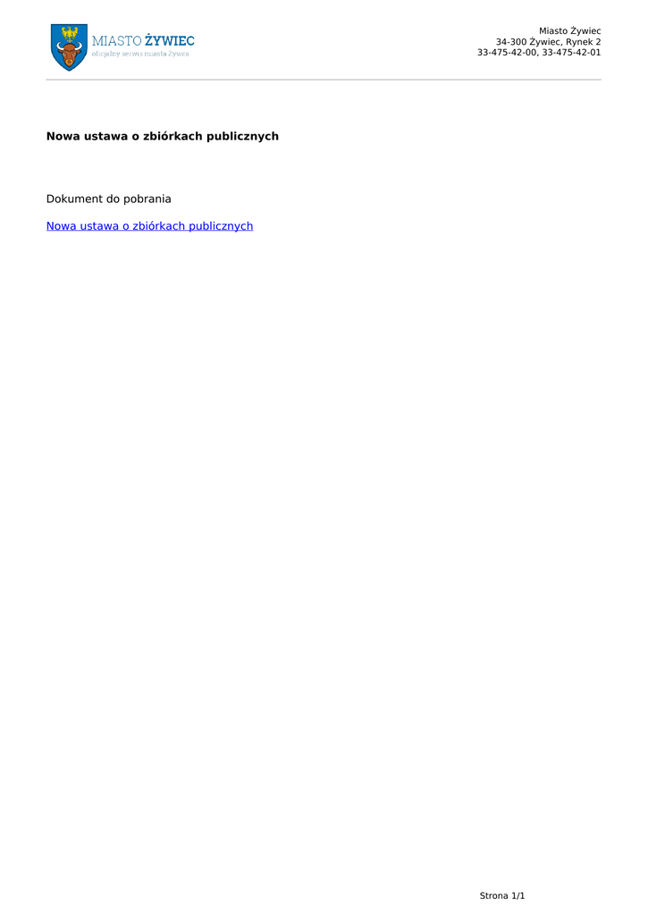 Miasto Żywiec 34-300 Żywiec, Rynek 2 33-475-42-00, 33-475-42-01 Nowa ustawa o zbiórkach publicznych Dokument do pobrania Nowa ustawa o zbiórkach publicznych Strona 1/1 Powered by TCPDF (www.tcpdf.org)
